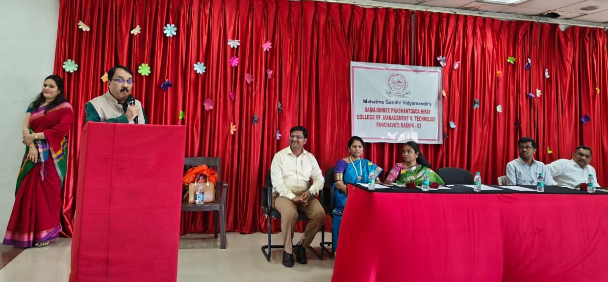 नाशिक ( प्रतिनिधी )महात्मा गांधी विद्यामंदिर संचलित समाजश्री प्रशांतदादा हिरे कॉलेज ऑफ मॅनेजमेंट अँड टेकनॉलॉजी येथे दिनांक २७ फेब्रुवारी, २०२६ रोजी मराठी भाषा गौरव दिन व कुसुमाग्रज जयंती निमित्त “सातासमुद्रापार मराठी भाषेचा प्रसार” या विषयावर आयोजित कार्यक्रमाला उत्स्फूर्त प्रतिसाद मिळाला. कार्यक्रमासाठी विशेष निमंत्रित म्हणून श्वेता करंदीकर व विभा लाड या संयुक्त अरब अमिरात येथून उपस्थित होत्या. हा कार्यक्रम सांस्कृतिक व ग्रंथालय विभाग यांच्या संयुक्त विद्यमाने तसेच सावित्रीबाई फुले पुणे विद्यापीठ चे सिनेट सदस्य व संस्थेचे समन्वयक डॉ. अपूर्व हिरे यांच्या संकल्पनेतून आयोजित करण्यात आला.