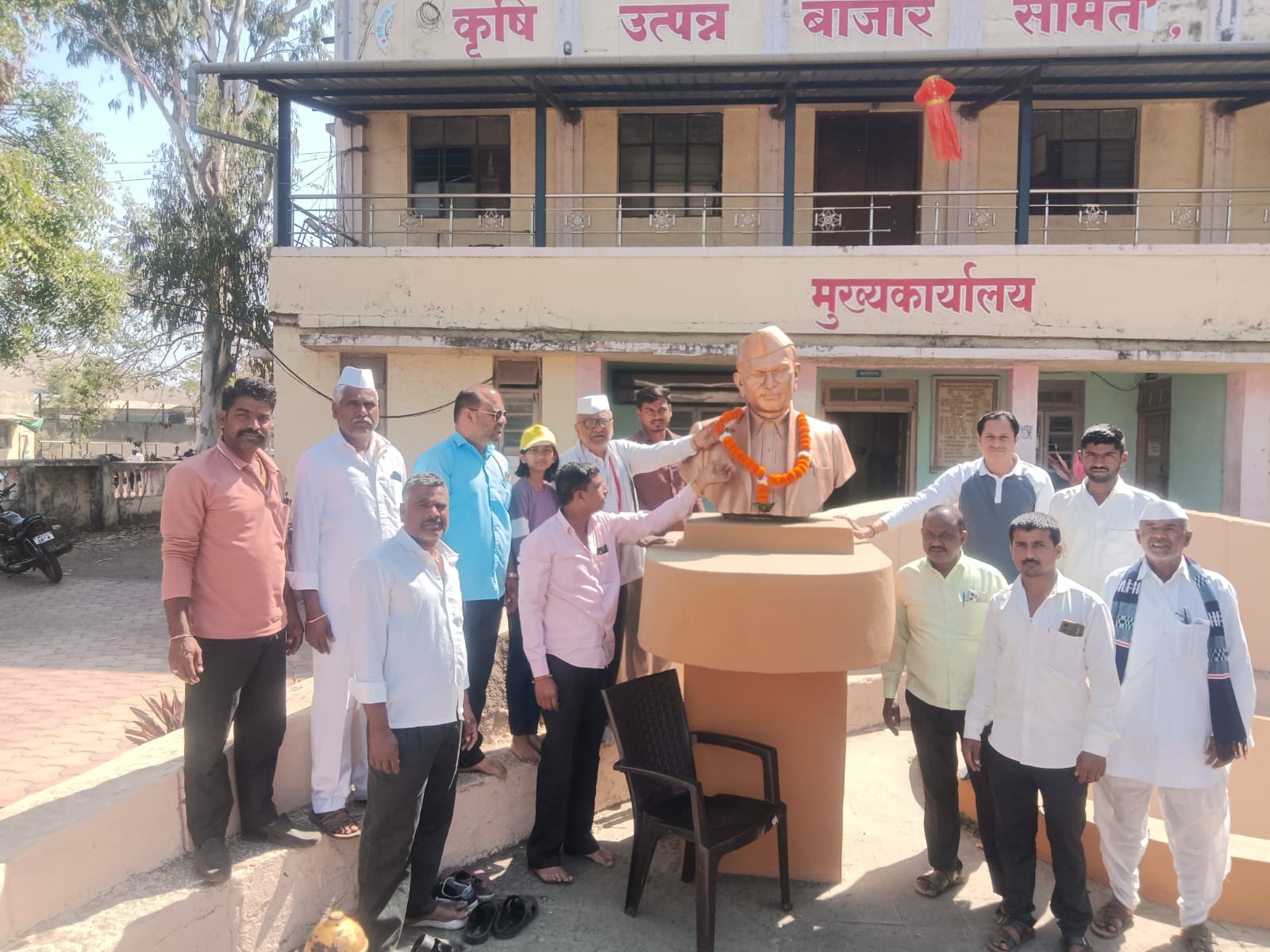 याप्रसंगी कर्मवीर भाऊसाहेब हिरे व क्रांतिवीर वसंतराव नाईक यांच्या पुतळ्यास दत्ता वायचळे व बाजार समितीचे कर्मचारी यांच्या हस्ते पुष्प मालेने मानवंदना देण्यात आली.