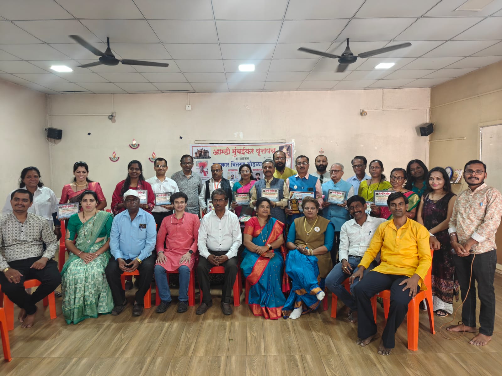 साप्ताहिक आम्ही मुंबईकर व्दारा पुरस्कार सोहळा मोठ्या जल्लोषात संपन्न झाला.रविवार दिनांक ८ मार्च २०२६ रोजी सकाळी ११वाजलेपासून दुपारी २ वाजेपर्यंत पुणे येथील काकडे देशमुख यांच्या उत्कर्ष शाळेत महिला दिनाचे औचित्य साधून आम्ही मुंबईकर वर्तमानपत्र व्दारा महाराष्ट्र राज्यातील साहित्य, सांस्कृतिक क्षेत्रातील उल्लेखनीय कामगिरी करणाऱ्या मान्यवरांसाठी साहित्य सांस्कृतिक पुरस्कार २०२६ देऊन सन्मानित करण्यात आले, सुरुवातीला सरस्वती पूजन करून दिप प्रज्वलन करण्यात आले, आम्ही मुंबईकर व्दारा अध्यक्ष, उद्घाटक, स्वागताध्यक्ष, प्रमुख पाहुणे यांचे सत्कार करण्यात आले, या प्रसंगी उद्घाटक सौ.वसुधा नाईक यांनी सांगितले की, ‘ आम्ही मुंबईकर मार्फत सकारात्मक पत्रकारिता जपू या,१ पानांचा अंक १० पानावर पोहचला,’तसेच प्रमुख पाहुणे म्हणून उपस्थित असलेले ज्येष्ठ पत्रकार साहित्यिक गीतकार सामाजिक कार्यकर्ते भारत कवितके यांनी सांगितले की,’ महाराष्ट्र राज्यातील अनेक पत्रकार व साहित्यिक यांना आम्ही मुंबईकर व्दारा संपादक प्रमोद सूर्यवंशी यांनी संधी प्राप्त करून दिली असल्याने प्रमोद सूर्यवंशी यांचे आभार ” प्रमुख पाहुणे निलेश दातार यांनी गंगाधर टिपरे यांच्या अभिनयाची नक्कल करून दाखवली, प्रिया दामले यांनी आम्ही मुंबईकर वर्तमानपत्राचे कौतुक करुन शब्द ही कविता सादर केली, अध्यक्ष शरदचंद्र काकडे देशमुख यांनी शाळा काढल्या तेव्हा आलेल्या अडचणी सांगितल्या, प्रास्ताविकात संपादक प्रमोद सूर्यवंशी यांनी सांगितले की,” हा पेपर काढला तेव्हा मला जेष्ठ पत्रकार साहित्यिक गीतकार सामाजिक कार्यकर्ते भारत कवितके आणि ग्राफिक डिझायनर अंगद दराडे यांनी अत्यंत मोलाचे सहकार्य केले, तसेच तुमच्या सर्वांच्या सहकार्याने मी आम्ही मुंबईकर वर्तमानपत्र चालू ठेवले आहे, किती ही संकटे आली तरी मुंबईकर मागे हटत नाही, म्हणून हे नाव ही सार्थ आहे.”या वेळी योगिता कोठेकर यांच्या संस्कार शिदोरी या चारोळी संग्रहाचे प्रकाशन व्यासपीठावर उपस्थित असलेल्या मान्यवरांच्या हस्ते करण्यात आले, सूत्रसंचालन गौरव पुंडे यांनी केले, या प्रसंगी श्रीराम घडे, विजय सातपुते, अशोक मोहिते, नंदा सावंत, अनुपमा जाधव, दुर्गा पवार,