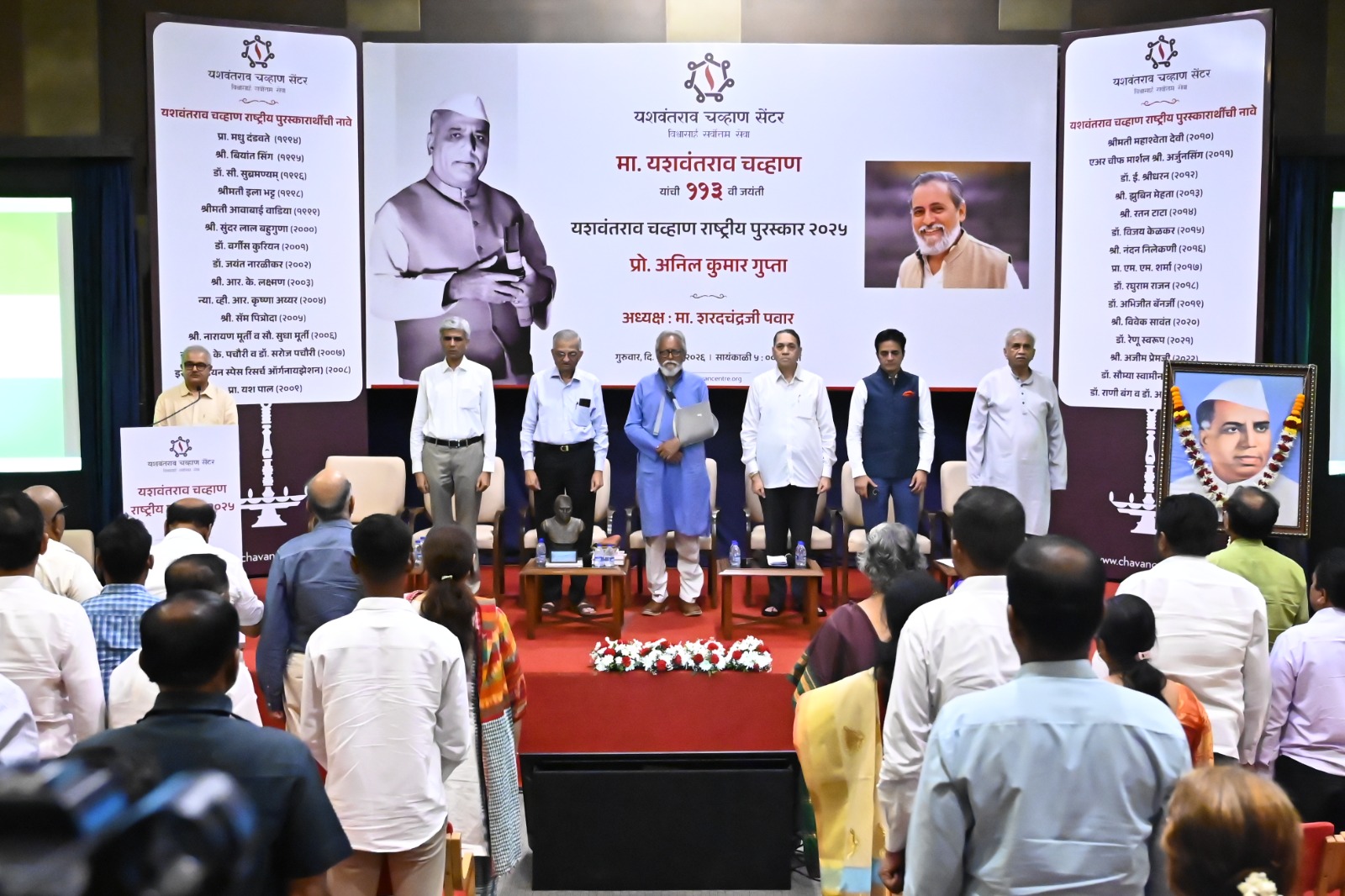 मुंबई (गुरुदत्त वाकदेकर) : समाजाभिमुख नवोपक्रम आणि ग्रासरूट इनोव्हेशनसाठी ओळखले जाणारे प्रो. डॉ. अनिल कुमार गुप्ता यांना २०२५ साठी यशवंतराव चव्हाण राष्ट्रीय पुरस्कार प्रदान करण्यात आला. चव्हाण सेंटर दरवर्षी हा पुरस्कार राष्ट्रीय एकात्मता, लोकशाही मूल्ये आणि सामाजिक-आर्थिक क्षेत्रातील उत्कृष्ट कार्यासाठी देते. प्रो. गुप्ता हे हनी बी नेटवर्कचे संस्थापक आहेत.