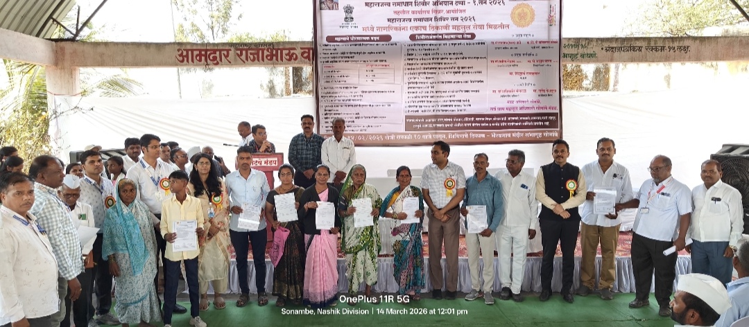 ग्रामविकास विभागामार्फत ८-अ दाखले – ९, विवाह नोंदणी दाखले – ७, जन्म दाखले – ११, मृत्यू दाखले – ४ वितरित करण्यात आले. तसेच पोटखराब क्षेत्र लागवडीयोग्य करण्याच्या १३ प्रकरणांवर कार्यवाही करण्यात आली. या शिबिरामुळे नागरिकांची महसूल व विविध शासकीय कामे त्वरित मार्गी लागल्याने ग्रामस्थांनी समाधान व्यक्त केले. उपस्थित सर्व अधिकारी वर्गाचे ग्रामपंचायत सोनांबे सरपंच व ग्रामस्थानी सत्कार केला. वृक्ष मित्र परिवाराच्या वतीने मा. विभागीय आयुक्त यांच्या हस्ते वृक्षारोपण करुन कार्यक्रमाची सांगता करण्यात आली.
