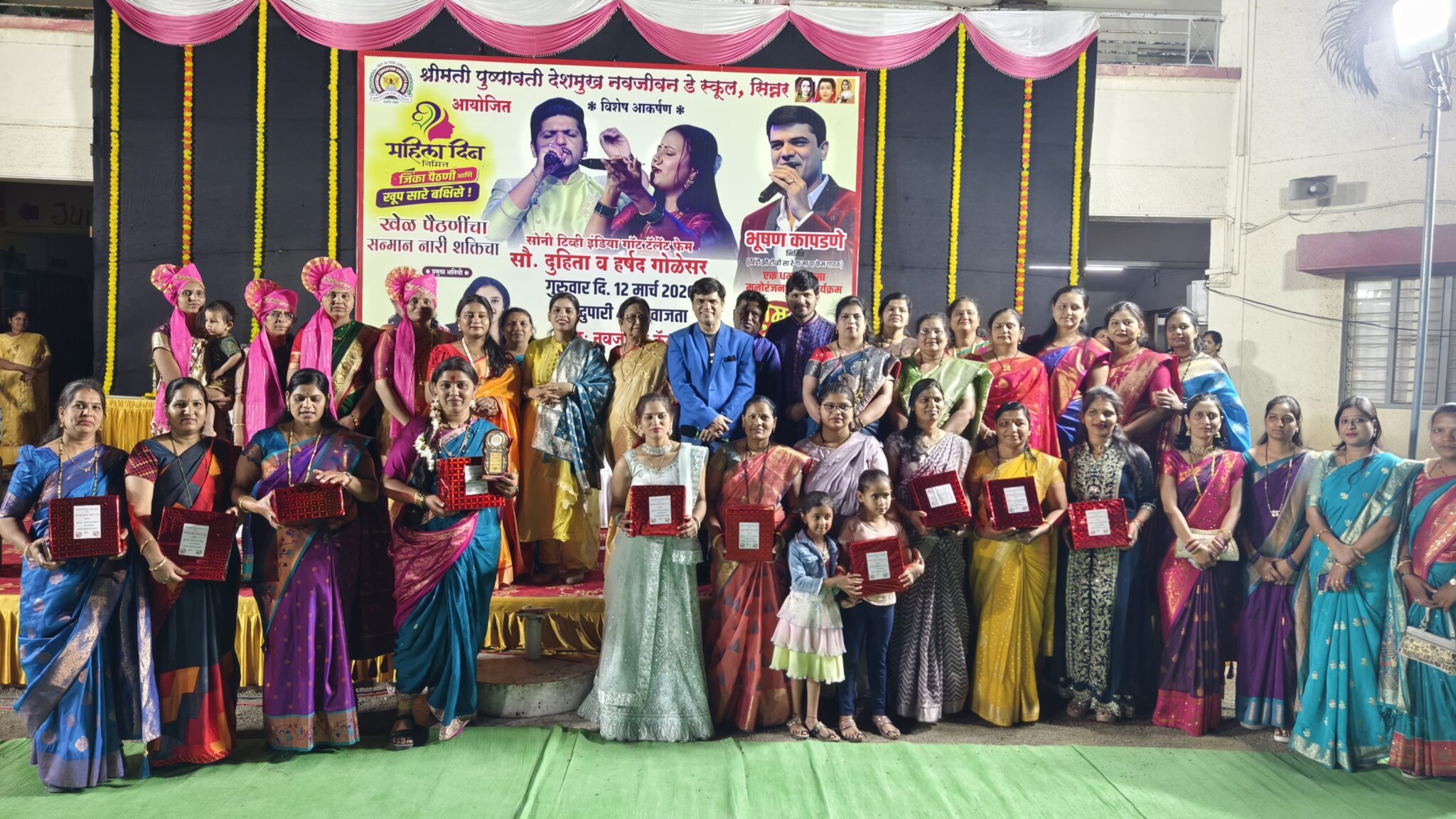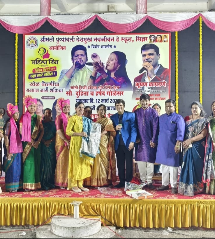 सिन्नर (प्रतिनिधी ) नवजीवन स्कूल मध्ये महिला दिनानिमित्त सिन्नर होम मिनिस्टर चा उत्साह नाचत गात अन् कलागुणांचे दर्शन घडवीत बक्षिसांची लयलूट…..श्रीमती पुष्पावती देशमुख नवजीवन डे स्कूल सिन्नरच्या प्रांगणात आंतरराष्ट्रीय महिला दिनानिमित्त संस्थेच्या चेअरमन सौ विजयाताई देशमुख( बडे मॅडम) संस्थेच्या संचालिका शिरीन (दीदी )तसेच संस्थेच्या जॉईंट मॅनेजिंग ट्रस्टी सौ मंगला पवार मॅडम प्रमुख पाहुणे म्हणून उपस्थित होत्या यावेळी संगीत शिक्षिका कुमारी गायत्री मांडे यांनी स्वागत गीत सादर करून कार्यक्रमास सुरुवात झाली संस्थेच्या चेअरमन सौ विजयाताई देशमुख (बडे मॅडम) यांच्या हस्ते आत्ताच सुरू असलेल्या इंडियाज गॉट टॅलेंट या जागतिक दर्जाच्या कार्यक्रमाचे सेमी फायनल लिस्ट होऊन सिन्नर चे नाव जगभर पोहचून घवघवीत यश मिळवणारे हाय रामा या त्यांच्या व्हिडिओला करोडो लाईक्स मिळणारे सिन्नरचे भूमिपुत्र श्री हर्षद किसन गोळेसर सौ दुहिता हर्षद गोळेसर यांचा भव्य सत्कार करण्यात आला यावेळी त्यांनी आपले गीत सादर करून प्रेक्षकांना मंत्रमुग्ध केले