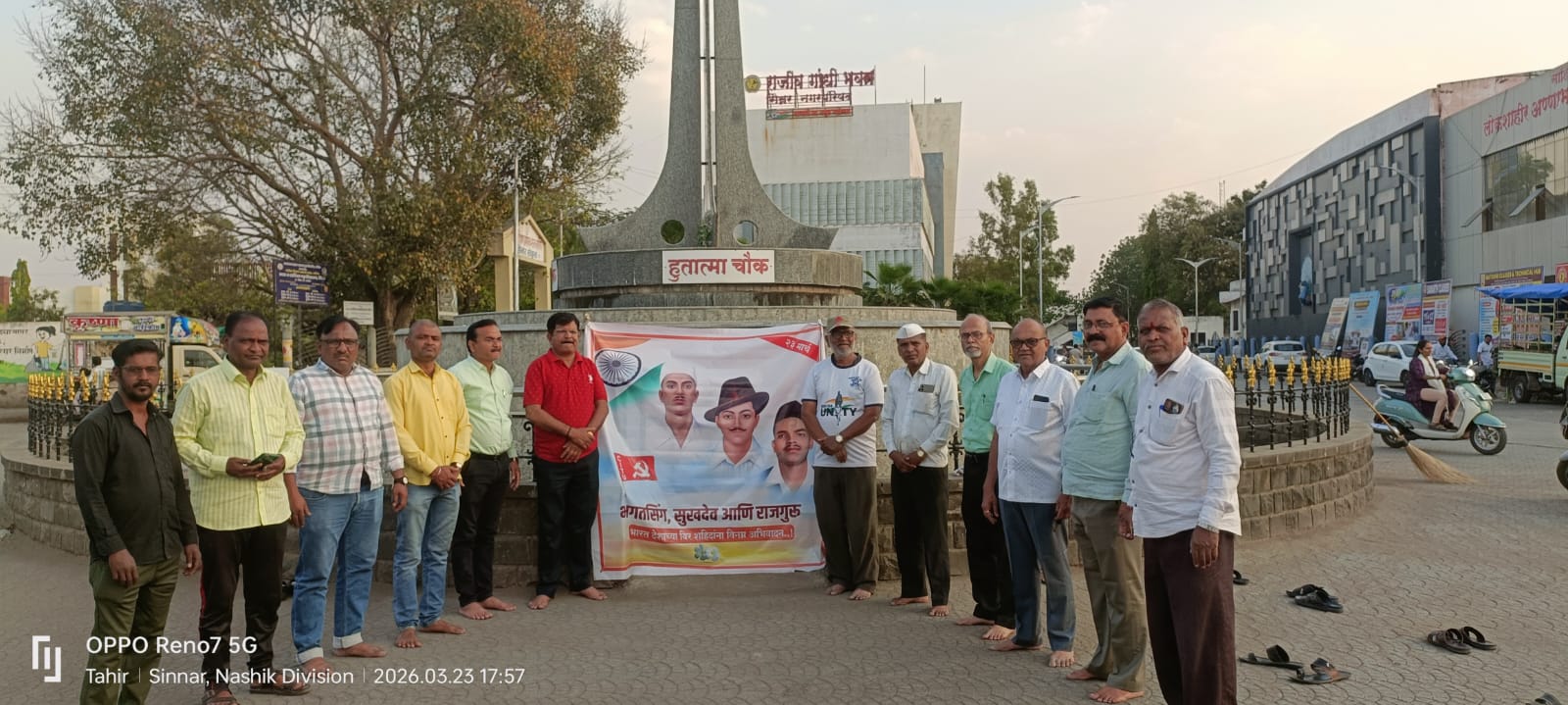 सिन्नर ( प्रतिनिधी )२३ मार्च २०२६ शहिद भगत सिंग, शहिद सुखदेव, शहिद राजगुरु यांचा ९५ व्या शहिद दिनानिमित्त सिन्नर नगरपालिका कर्मचारी ,महामित्र परिवार,सीटू परिवार व आद्यक्रांतिकारक क्रांतिकारक राघोजी भांगरे ब्रिगेड यांच्या वतीने सिन्नर येथिल हुतात्मा चौक येथे त्यांना अभिवादन करण्यात आले.