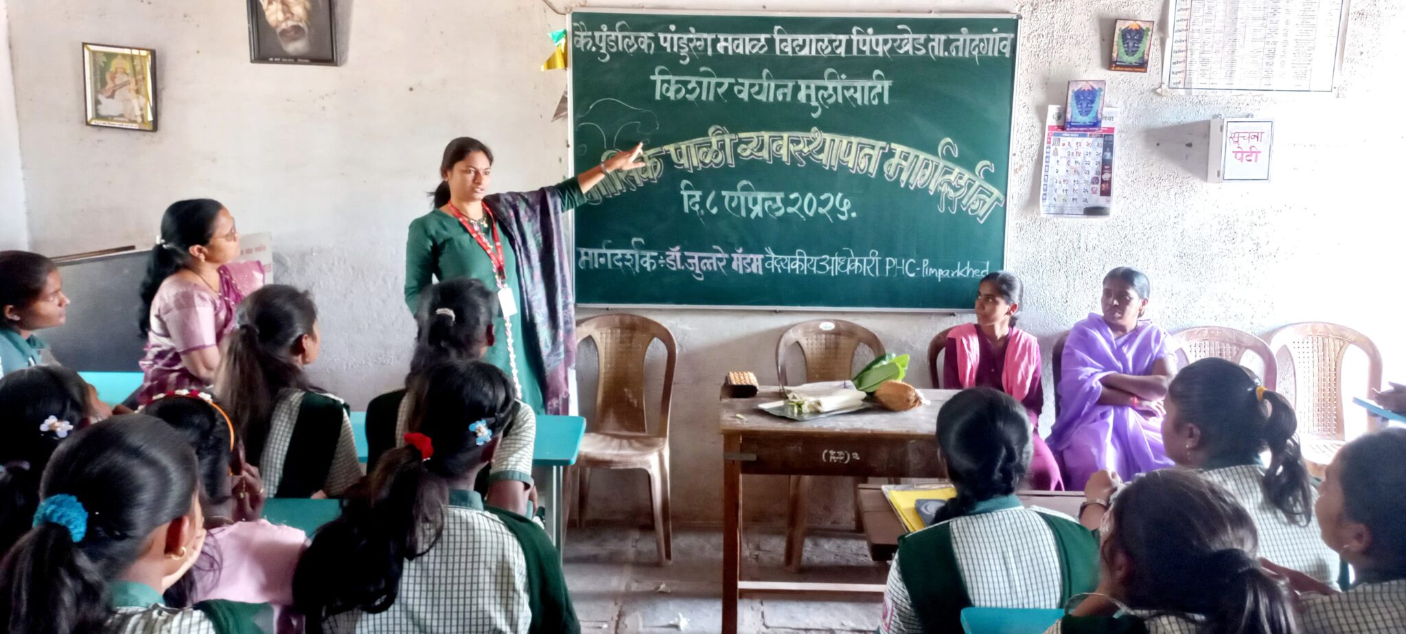 .पिंपरखेड -( प्रतिनिधी )येथील कै.पुंडलिक पांडूरंग मवाळ विद्यालयात किशोरवयीन मुलींना आज रोजी मासिक पाळी व्यवस्थापन या विषयावर येथील पी. एच. सी. चे डॉ. अमित गायकवाड यांच्या मार्गदर्शनाखाली वैद्यकीय अधिकारी डॉ. जुन्नरे मॅडम यांनी सखोल मार्गदर्शन केले. मुलींच्या विविध प्रश्नांवर त्यांनी चर्चेच्या माध्यमातून समाधानकारक उत्तरे दिली. मुलींच्या समस्यांवर उपाय सुचवले.