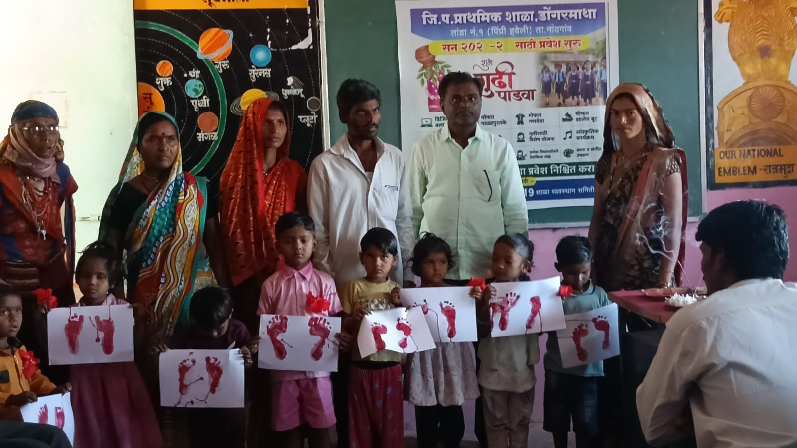 पिंपरी हवेली ( प्रतिनिधी ) "गुढीपाडवा,पट वाढवा" उपक्रमांतर्गत जिल्हा परिषद प्राथमिक शाळा डोंगरमाथा पिंपरी हवेली येथील शाळेत पुढील शैक्षणिक वर्ष सन २०२६/२७ मध्ये इयत्ता पहिलीत दाखल होणाऱ्या नवीन विद्यार्थ्यांची प्रवेश प्रक्रिया सुरू करून सुमारे दाखल पात्र १४ विद्यार्थ्यांचे प्रवेश फॉर्म भरून घेण्यात आले.दाखल पात्र विद्यार्थ्यांचे गुलाब पुष्प,पायांचे ठसे घेऊन तसेच पेढे भरून अनोखे असे स्वागत करण्यात आलेमुख्याध्यापक कल्याण पाटील सर यांनी आपल्या प्रास्ताविकात "गुढीपाडवा,पट वाढवा"उपक्रमाची माहिती उपस्थितांना देऊन दाखलपात्र एकही मूल शाळेपासून वंचित राहणार नाही यासाठी सर्वांनी सहकार्य करण्याचे आवाहन केले असता,सर्वांनी त्यास संमती दर्शवली.याप्रसंगी शाळा व्यवस्थापन समितीचे अध्यक्ष,उपाध्यक्ष,सदस्य, पदाधिकारी,ग्रामस्थ,पालक, विद्यार्थी आदी उपस्थित होते.कार्यक्रमाचे सूत्रसंचालन उपशिक्षक रामचंद्र पाटील सर यांनी केले,तर मुख्याध्यापक कल्याण पाटील सर यांनी उपस्थितांचे आभार मानले.