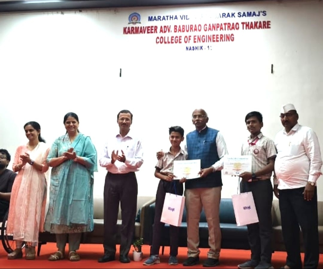 नांदगाव ( प्रतिनिधी ):- मराठा विद्या प्रसारक समाज संस्थेच्या नांदगाव येथील न्यू इंग्लिश स्कूल च्या विद्यार्थ्यांनी IDEABOX 2026 या स्पर्धेत यश प्राप्त केले. कार्यक्रमाप्रसंगी व्यासपीठावर मविप्र संस्थेचे सरचिटणीस ॲड.नितीन ठाकरे साहेब, निलेश चिंचोलेकर, अशोक मार्कंड उपस्थित होते मराठा विद्या प्रसारक समाज संस्था व माजी विद्यार्थी संघटना यांच्या संयुक्त विद्यमाने आयडिया बॉक्स २०२६ ही विशेष स्पर्धा आयोजित करण्यात आली होती. इयत्ता पाचवी ते दहावीतील विद्यार्थ्यांमध्ये नाविन्यपूर्ण विचार विज्ञान,कुतूहल,सृजनशीलता आणि उद्योजकतेची बीजे रुजवणे हा मुख्य हेतू यामागे होता.विद्यार्थ्यांनी आपल्या रोजच्या जीवनातील छोट्या-मोठ्या समस्यांवर उपाय शोधून नवीन कल्पना,उपकरणे,ॲप्स,सवयी, सेवा,उत्पादने अथवा बदल याबाबत आपले विचार लिहून आयडिया बॉक्समध्ये सादर केले होते. नुकताच या स्पर्धेचा निकाल जाहीर झाला आहे,यात न्यू इंग्लिश स्कूलच्या कृष्णा कुमावत, ओम सुपेकर या दोन विद्यार्थ्यांची उत्कृष्ट कल्पनांसाठी पारितोषिक विजेते म्हणून निवड करण्यात आली आहे . स्पर्धेतील सर्व यशस्वी विद्यार्थी व समन्वयक उपशिक्षक गजेंद्र माताडे यांच्या या यशाबद्दल त्यांचा सत्कार समारंभ केबीटी इंजीनियरिंग कॉलेज गंगापूर रोड नाशिक या ठिकाणी मविप्र समाज संस्थेचे सरचिटणीस ॲड .नितीन ठाकरे साहेब यांच्या हस्ते करण्यात आला.या सर्व यशस्वी विद्यार्थींचे मविप्र समाज संस्थेचे सर्व पदाधिकारी व तालुका संचालक इंजि. अमित भाऊ बोरसे-पाटील,शालेय समितीचे अध्यक्ष, विजय काकळीज व सर्व सदस्य,पालक - शिक्षक संघाचे अध्यक्ष व सर्व सदस्य,विद्यालयाचे मुख्याध्यापिका ज्योती काळे, उपमुख्याध्यापक दिपक चव्हाण, पर्यवेक्षक अविनाश शेवाळे सर्व शिक्षक वृंद,शिक्षकेतर कर्मचारी यांनी अभिनंदन केले आहे.