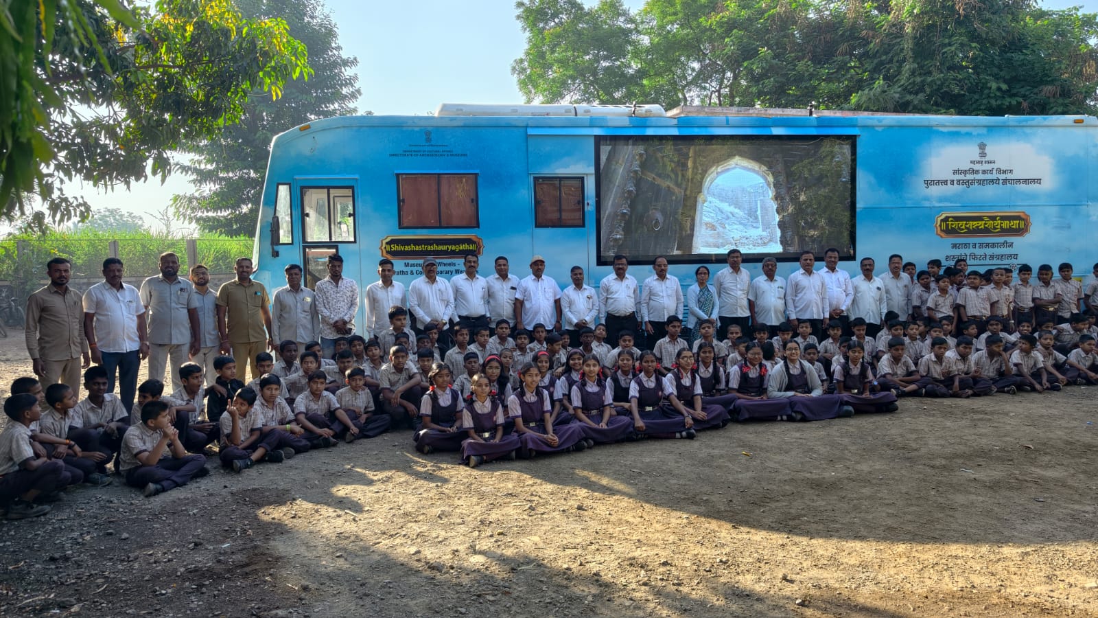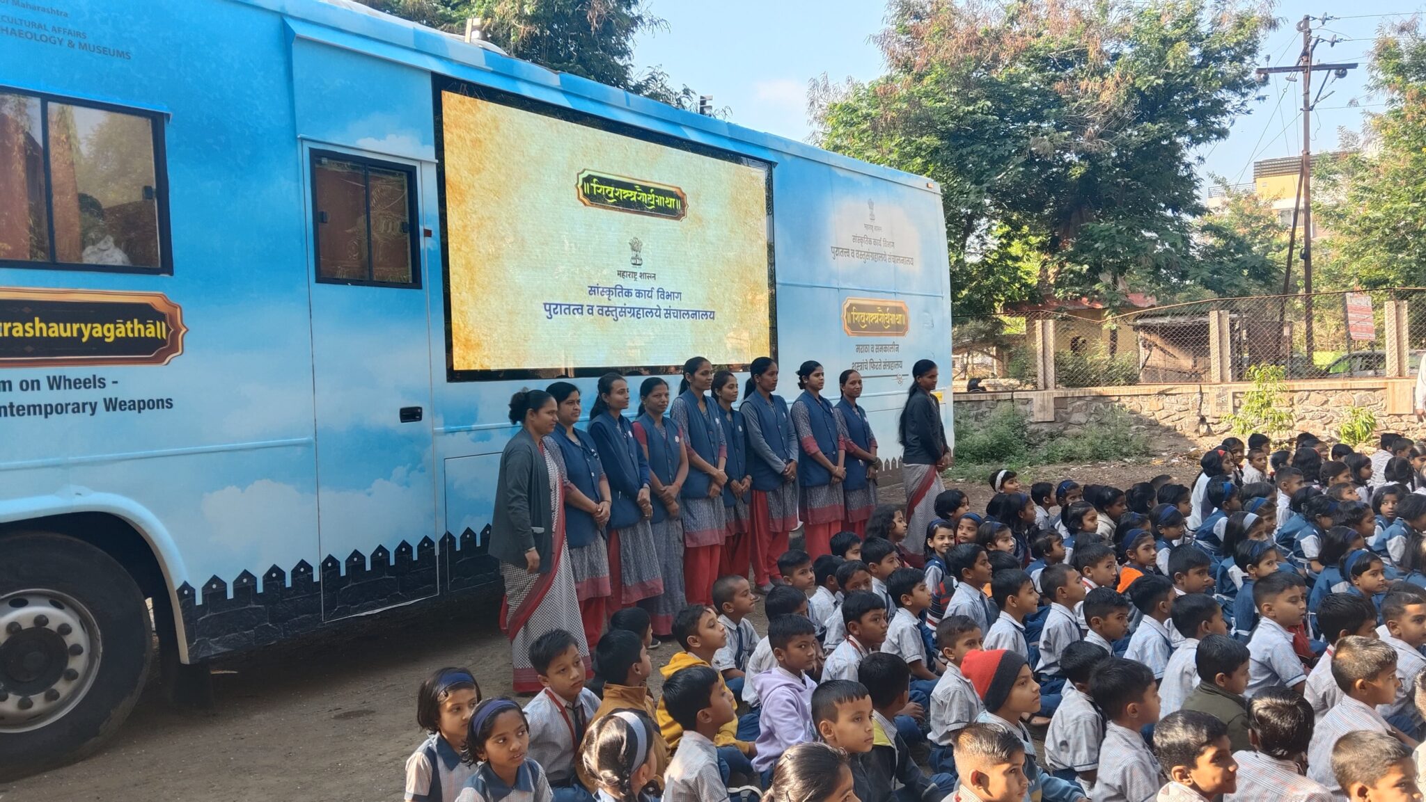 असता हे संग्रहालय पाहण्याचा आनंद विद्यालयातील विद्यार्थी व परिसरातील पालक, ग्रामस्थ ,इतिहास प्रेमींनी घेतला . छत्रपती शिवाजी महाराजांच्या समकालीन शस्त्र या फिरत्यासंग्रहालयामध्ये ठेवण्यात आले असून तसेच या शस्त्रांचा कशा पद्धतीने युद्धसाठी वापर होत असे त्यांची नावे, चित्र, माहितीयाचा स्लाईड शो विद्यार्थ्यांना दाखवण्यात आला .