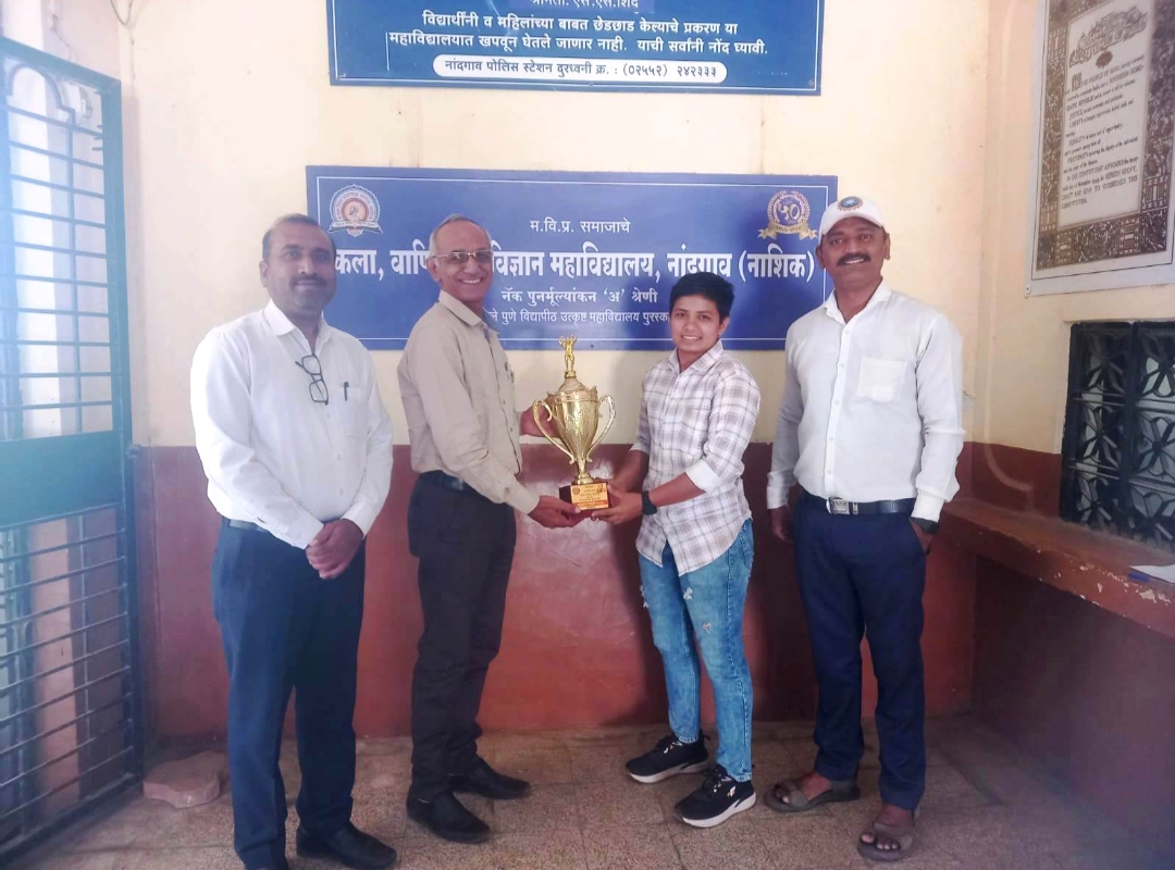 या स्पर्धेत कला, वाणिज्य व विज्ञान महाविद्यालय, नांदगाव येथील कु. नारायणी भालचंद्र जोशी (एफ.वाय. बी.एस्सी.) हिने उत्कृष्ट कामगिरी करत प्रथम क्रमांक पटकावला. तिला ट्रॉफी व रु. ४,०००/- रोख बक्षीस देऊन गौरविण्यात आले.