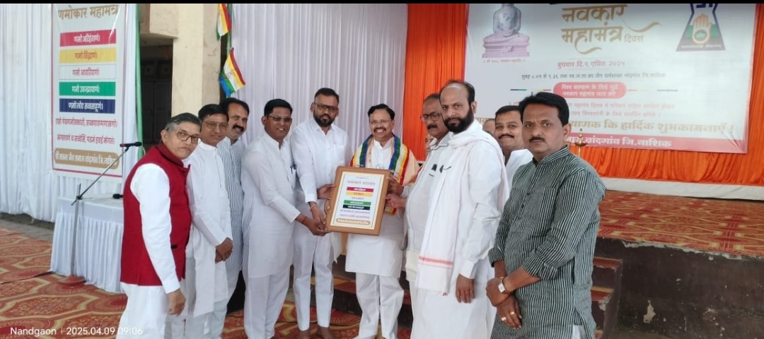 नांदगाव – विश्व नवकार दिवस नांदगाव येथे सकल जैन समाजाच्या वतीने ज ता का जैन धर्म शाळेत मोठ्या उत्साहात संपन्न झाला यावेळी नवकार महामंत्राचा जप उपस्थित असलेल्या शेकडो लोकांनी व विविध शाळेतील विद्यार्थ्यांनी एक सुराने केल्यामुळे धार्मिक वातावरण तयार झाले होते