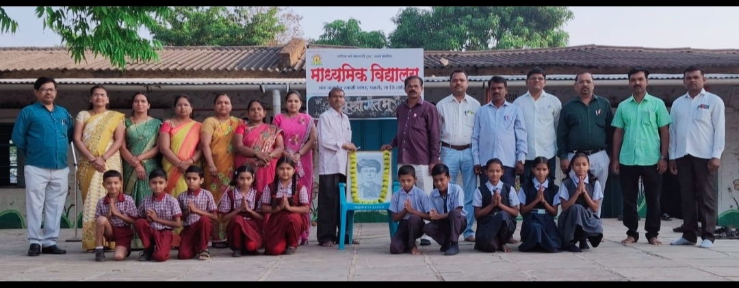 नासाका विद्यालयात महात्मा फुले यांना जयंतीनिमित्त अभिवादन करताना मुख्याध्यापक अरुण पगार, चंद्रकांत खानकरी यांच्यासह विद्यार्थी, शिक्षक आणि कर्मचारी.