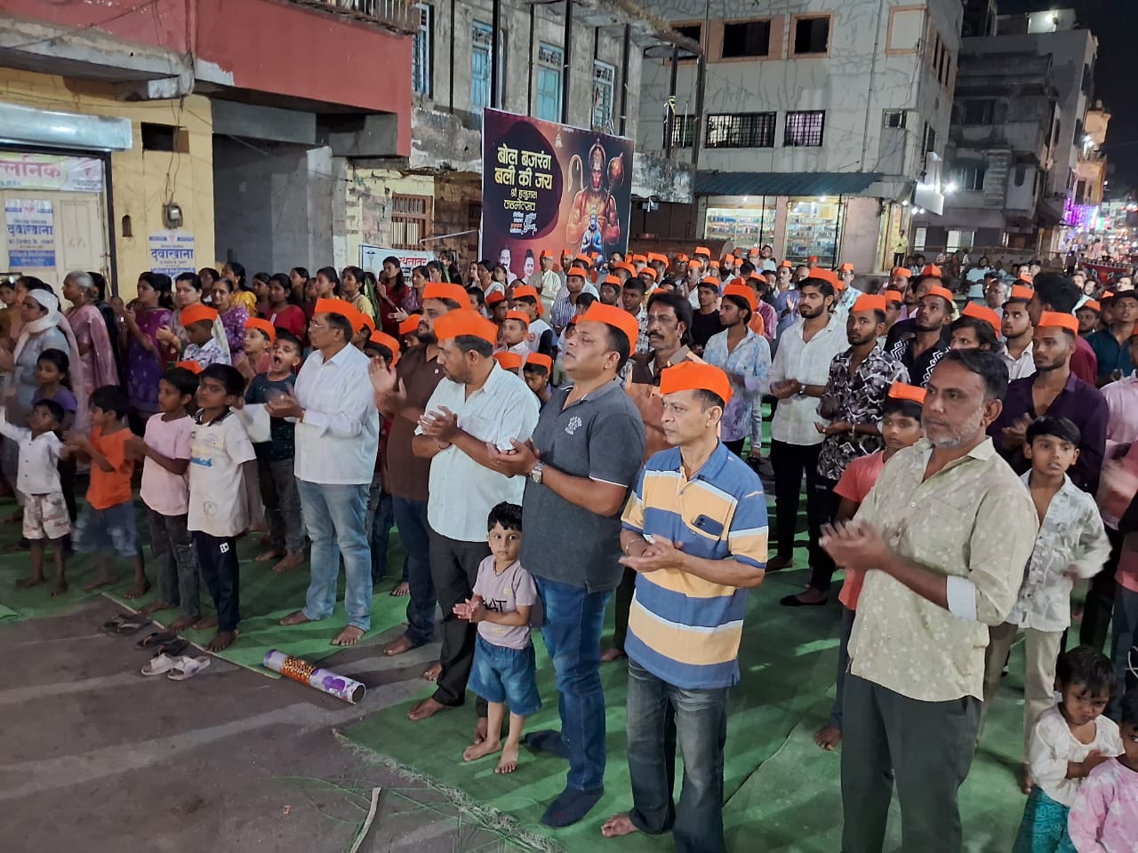 या सामूहिक हनुमान चालीसा पठण कार्यक्रमाला महिला युवक व बाल हनुमान भक्त मोठ्या संख्येने उपस्थित होते सर्व भक्तांनी भगव्या टोप्या परिधान केल्या होत्या यावेळी सिया वर रामचंद्र की जय, महाबली बजरंग बली की जय अश्या घोषणा नी परिसर दुमदूमला त्यानंतर श्री रुद्र हनुमान ची महाआरती करण्यात आली व प्रसाद वाटप झाले यंदा सामूहिक हनुमान चालीसा पठण चे हे पहिले वर्ष होते पुढील वर्षा पासून ही परंपरा सुरु राहणार असून मनमाड शहरात 30 पेक्षा जास्त हनुमान मंदिरात हा हनुमान चालीसा पठण कार्यक्रम हनुमान जन्म उत्सव निमित्ताने आयोजित करण्याचा संकल्प यावेळी करण्यात आला या कार्यक्रमा मध्ये मनमाड शहरातील विविध हिंदुत्ववादी राजकीय पक्ष संघटना,संस्था,मंडळ तसेच हिंदुत्ववादी कार्यकर्ते नी मोठा सहभाग नोंदवला या सामूहिक हनुमान चालीसा पठण कार्यक्रमा चे संयोजन श्री राम जन्मोत्सव समिती मनमाड 2025 यांनी केले त्र श्री रुद्र हनुमान मित्र मंडळाचे या कार्यक्रमाला विशेष सहकार्य लाभले