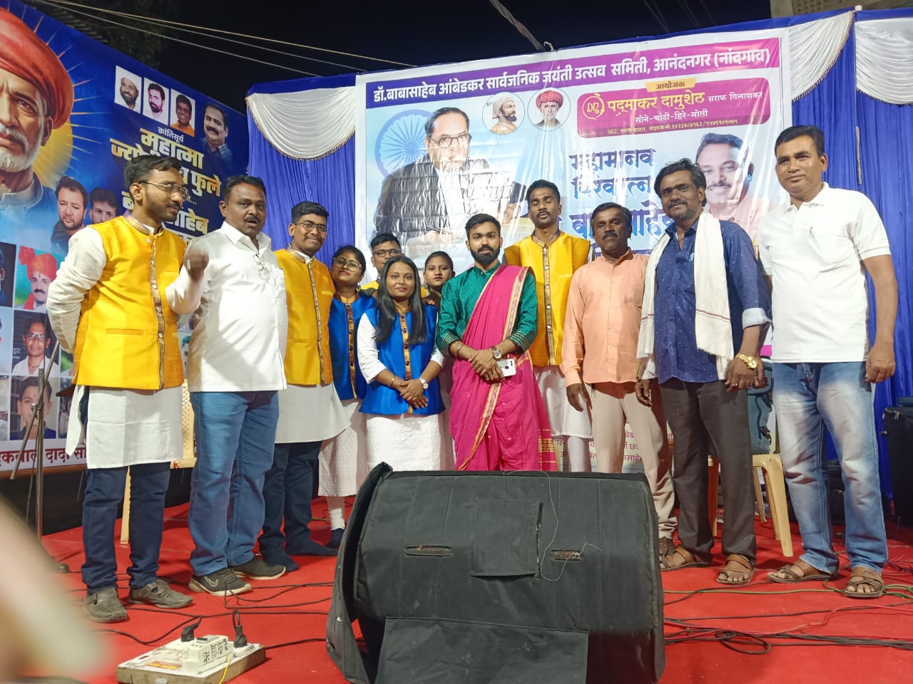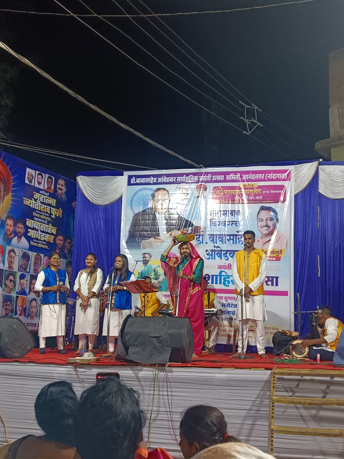 या कार्यक्रमांमध्ये डॉ बाबासाहेब आंबेडकर महात्मा ज्योतिबा फुले छत्रपती शिवाजी महाराज अण्णाभाऊ साठे या महामानवावर व महामातांवरती गीतांच्या स्वरूपात गीतांचा जल्लोष शाहिरी जल्लोष हा कार्यक्रम संपन्न झाला या कार्यक्रमाचे आयोजन राजाभाऊ गांगुर्डे यांनी केले होते तरी या कार्यक्रमाचे सूत्रसंचालन अनंद पवार यांनी केले
