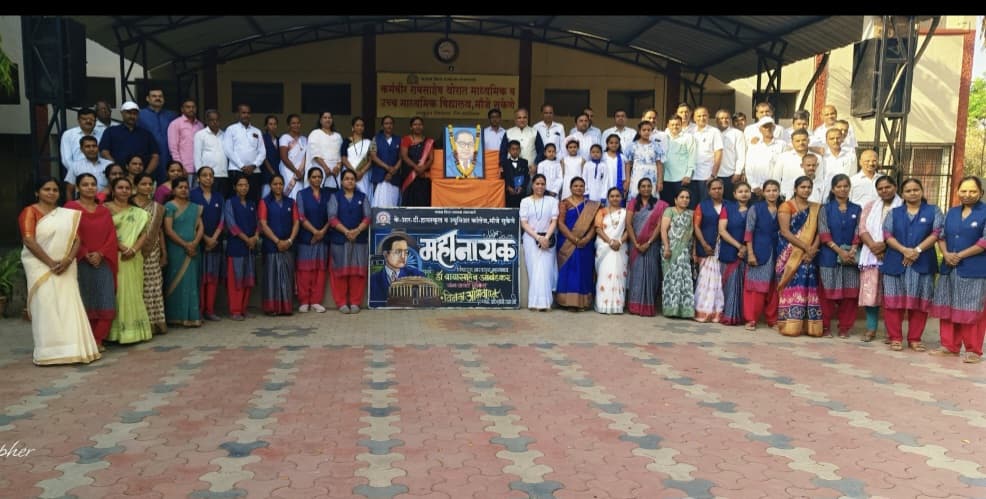 कसबे सुकेणे (प्रतिनिधी) ता 14- मौजे सुकेणे ता निफाड येथील कर्मवीर रावसाहेब थोरात माध्यमिक व उच्च माध्यमिक विद्यालयात महामानव भारतरत्न डॉ बाबासाहेब आंबेडकर यांच्या जयंतीनिमित्ताने त्यांना अभिवादन करण्यात आले अध्यक्षस्थानी प्राचार्य रायभान दवंगे होते तर व्यासपीठावर प्रति डॉ बाबासाहेब आंबेडकरांच्या भूमिकेत कु आदित्य मोरे, प्रसिद्ध विधीतज्ञ ॲड निर्मला अरिंगळे, अभिनवचे मुख्याध्यापक राहुल मोगल,कॉलेज विभाग प्रमुख राजेंद्र धनवटे, दिनेश मोरे,सुमित शार्दुल, चेतन चव्हाण, श्रीम पुनम वाघ,श्रीम योगिता चव्हाण श्रीम जे पी सोनवणे आदी व्यासपीठावर उपस्थित होते सुरुवातीला प्राचार्य दवंगे व उपस्थितांच्या हस्ते डॉ आंबेडकर यांच्या प्रतिमेचे पूजन करण्यात आले प्रास्ताविक श्रीमती ठाकरे यांनी केले यावेळी अभिनव विद्यालयाचे विद्यार्थी कु स्वरा मड्ड्ररवार, कु वेदांत हळदे, कु दर्श भोजने, कु वैष्णवी शेवकर यांनी तर शिक्षकांच्या वतीने श्रीमती देशमुख यांनी डॉ आंबेडकरांच्या जीवन कार्याची ओळख करून दिली तर अध्यक्षीय मनोगतातून प्राचार्य दवंगे यांनी भारतीय समाज व संविधानासाठी डॉ आंबेडकरांनी केलेले कार्य विशद केले सूत्रसंचालन चौथीची विद्यार्थिनी कु जानवी अरिंगळे हिने केले तर आभार कु श्रद्धा तिडके हिने मानले कार्यक्रमासाठी सर्व शिक्षक, शिक्षकेतर कर्मचारी व विद्यार्थी उपस्थित होते आकर्षक फलक लेखन कला शिक्षिका श्रीम आरती मोरे व श्रीम गायकवाड यांनी केले