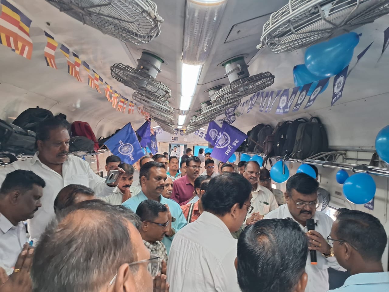 आणि आता अत दीप भव मन्हत संविधानाचा जागर करीत पंचवटी मार्गस्थ झाली.पंचवटी एक्सप्रेस केवळ एका ठिकाणा वरून गंतव्य स्थाना पर्यन्त वहन करणारी रेल्वे कोचेस पुरती मर्यादित राहिली नसून आपुलकी आणि माणुसकीचा अनोखा संगम या ट्रेन मध्ये होत असतो. केवळ नावापुरती ही गाडी नाही तर ती एक वैचारिक आणि सांस्कृतिक धरोहर आहे. नाशिक शहर व परिसरातील अनेक लोंकाची ने आन करता करता एक दर्जा पंचवटी ने टिकून ठेवला आहे. महामानवांच्या विचाराचा वारसा या ट्रेन मार्फत जपला जातो आहे याचा आंनद वाटतोय.