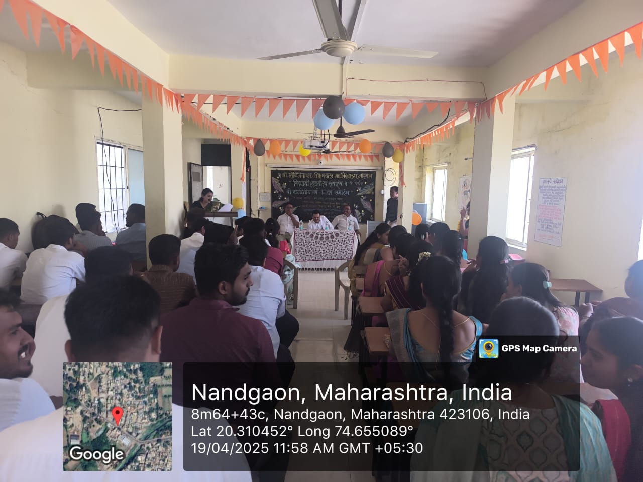 ग्रामीण भागातील विद्यार्थी हा व्यवसायिक शिक्षणापासून वंचित राहू नये तसेच तो सर्व स्पर्धेमध्ये सर्वोच्च यश संपादन कसे करतो याविषयी मार्गदर्शन केले, तसेच राष्ट्रीय शैक्षणिक धोरणातील बदलानुसार आजचा शिक्षक सर्व गुणसंपन्न असला पाहिजे याविषयी श्री योगेश पाटील सर यांनी आपले मनोगत व्यक्त केले, यावेळी सांस्कृतिक विभाग प्रमुख प्राध्यापिका कांबळे मॅडम व गवळी मॅडम, प्रा. इप्पर सर, पवार सर,किरण बोरसे यांनी कार्यक्रमाचे नियोजन केले, कार्यक्रमाच्या यशस्वीतेसाठी सर्व प्राध्यापक, प्रथम व द्वितीय वर्षाच्या सर्व विद्यार्थ्यांनी सहभाग नोंदविला कार्यक्रमाचे आभार प्रदर्शन लाखी किरांत या विद्यार्थ्यांनी केले व राष्ट्रगीताने आणि कार्यक्रमाचा समारोप करण्यात आला,