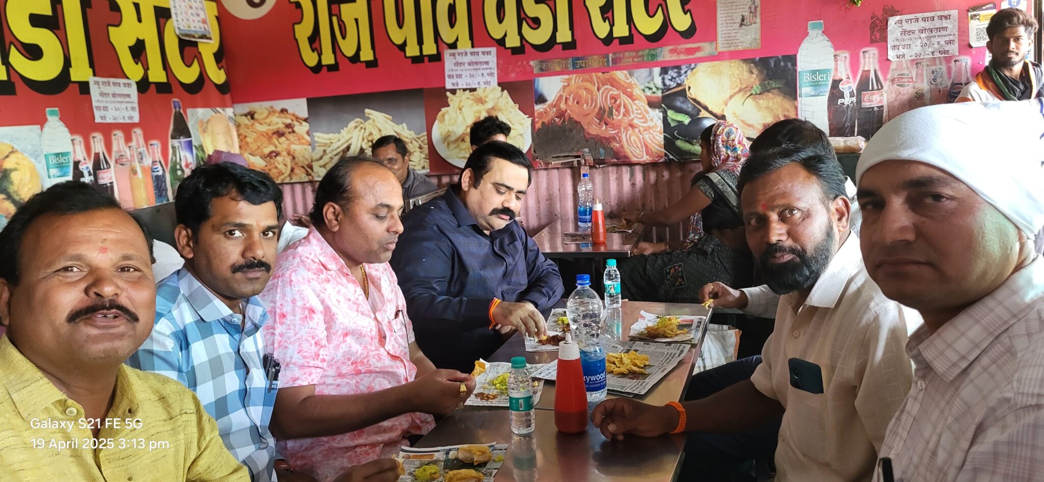नांदगाव, दि. 20 (मुक्ताराम बागुल):- नांदगाव विधानसभा मतदार संघाचे आमदार सुहास अण्णा कांदे यांनी नांदगाव तालुक्यातील बोलठाण येथे चक्क आपल्या सहकारी मित्र व कार्यकर्त्यांसोबत साध्या हॉटेलमध्ये ताव मारला त्यामुळे पाहणाऱ्यांच्या मनात एकच भावना आली ती म्हणजे सर्वसामान्यांचा आमदार… सुहास अण्णा. सध्या लग्नसराईचा सीजन सुरू आहे. पाणी शक्य होईल त्या प्रत्येक ठिकाणी नांदगाव विधानसभा मतदारसंघाचे आमदार सुहास अण्णा कांदे यांनी शक्य होईल त्या प्रत्येक ठिकाणी भेट देण्याचे काम करत आहेत. अशातच दिनांक 19 एप्रिल 2025 रोजी शनिवारी नांदगाव तालुक्यातील घाट माथ्यावरील पूर्व भागात असलेल्या बोलठाण येथील नाक्यावर असलेल्या राजे पाव वडा सेंटर वर आपल्या सहकारी मित्र व कार्यकर्त्यांसोबत पाव वाड्यावर ताव मारला. पाव वड्यावर गाव मारणारा आमदार पाहून पाहणाऱ्यांच्या मनात एकच भावना आली ती म्हणजे…. सर्वसामान्यांचा आमदार सुहास अण्णा कांदे अशी भावना निर्माण झाली.