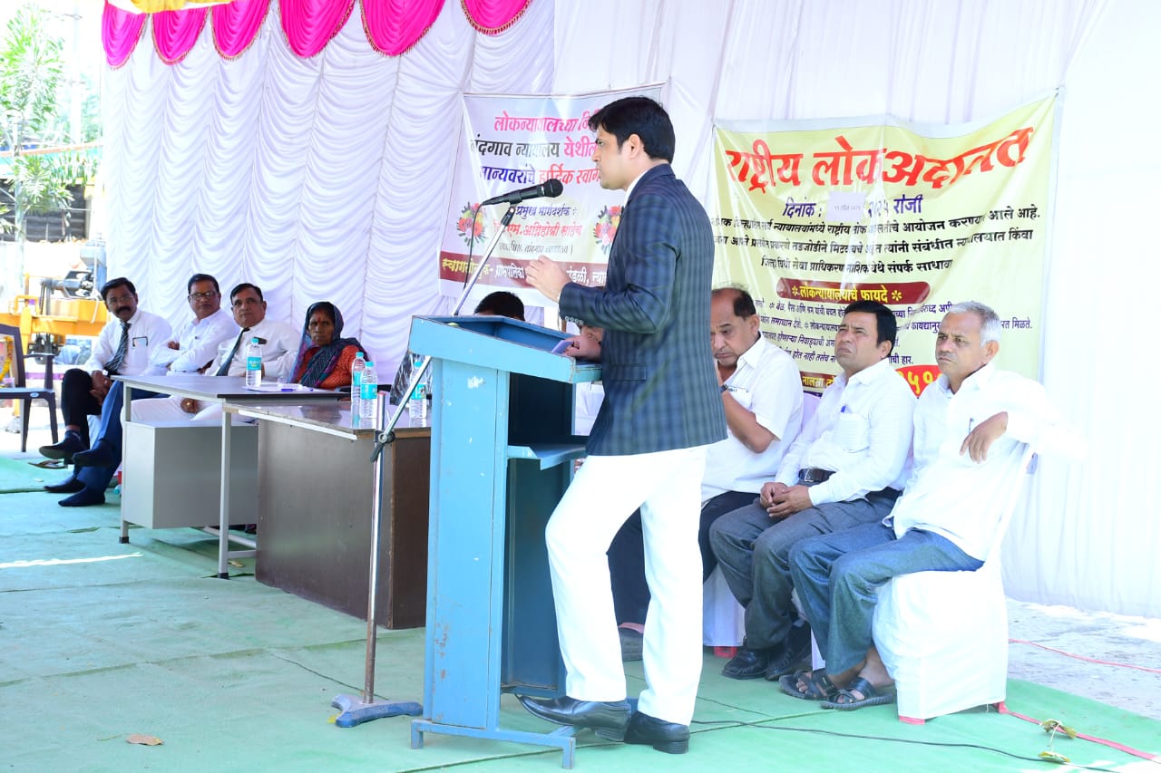 फिरते लोक न्यायालय या संकल्पनेच्या माध्यमातून “न्याय आपल्या दारी” या उपक्रमाचे महत्त्व पटवुन देताना न्यायमूर्ती अग्निहोत्री म्हणाले की लोकन्यायालयात मिटविण्यात येणाऱ्या खटल्यांची प्रामुख्याने चार विभागात विभागणी करण्यात येते त्यात १) लवाद २) मध्यस्थी ३) समन्वय ४) आणि वैकल्पिक समझोता घडवून .न्यायालयात प्रलंबित असलेले विविध प्रकरणे त्यात काही दिवाणी, काही फौजदारी ,काही कौटुंबिक, तर काही वसुली संदर्भातील निकाली काढून न्यायालयातील प्रलंबित खटल्यांचा भार कमी करण्याबरोबरच सर्वसामान्य जनतेच्या मनात कोर्ट कचेरी बाबत असलेली भीती दूर व्हावी हा प्रमुख हेतु असून प्रलंबीत दावेदारांनी या उपक्रमात सहभाग घेऊन आपला वेळ,पैसे,होणारा त्रास वाचविण्याबरोबरच शासनास व न्यायव्यवस्थेसही सहकार्य करावे असे प्रतिपादन न्यायमूर्ती “अग्निहोत्री “यांनी आपल्या अध्यक्षीय भाषणात केले.तसेच न्यायालयात दावा दाखल करण्यापूर्वी ही संमनवयकाचे माध्यमातून वाद कसे मिटविता येतात या विषयी सविस्तर माहिती देऊन या पर्यायाचा वापर करण्यावर भर देण्यात आला.