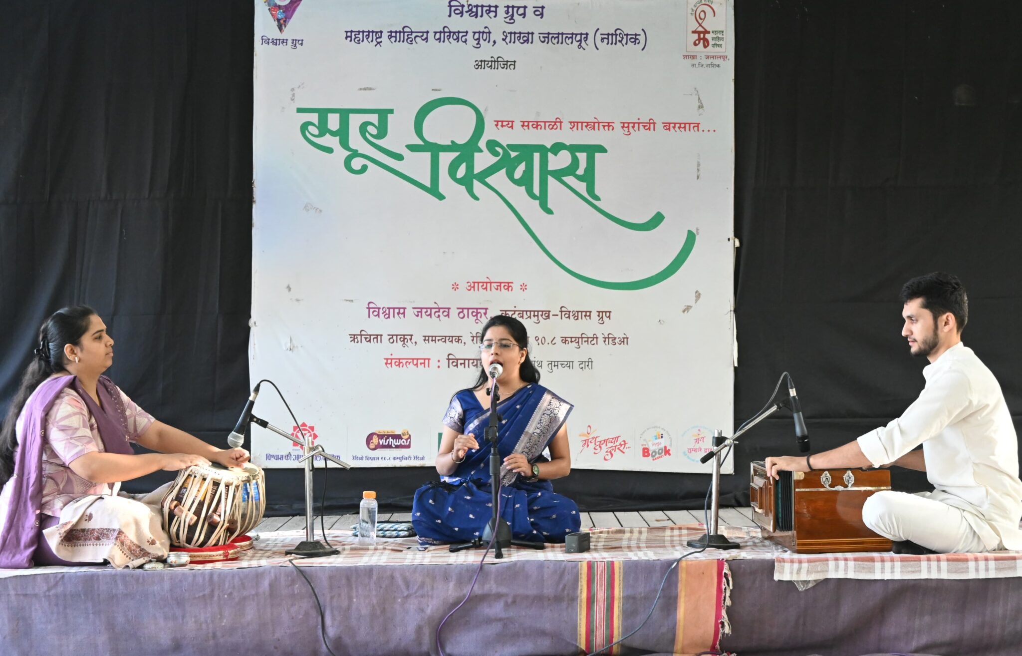 नाशिक (प्रतिनिधी) :.तरल स्वरांचे माधुर्य , स्वरांची लय व उपजत अभिजात स्वर यांचे गोंदण घेऊन सुर विश्वास ची मैफल उत्तम.रंगली. यातून ईश्वर भक्तीची आस उपस्थितांनी अनुभवलीनव्या पिढीतील कलाकारांच्या अविष्काराला हक्काचे व्यासपीठ देण्यासाठी ‘सूर विश्वास’ या अनोख्या मैफलीचे आयोजन करण्यात आले होते भक्ती नांदुर्डीकर यांचे शास्त्रीय गायन संपन्न झाले. वैष्णवी भडकमकर , (तबला), अभिजीत भटजिरे (संवादिनी) यांची त्यांना साथसंगत केली. तर कार्यक्रमाचे सूत्रसंचलन डॉ.स्मिता मालपुरे यांनी केले.मैफिलीचे हे 49 वें पुष्प होते विश्वास ग्रुपचे कुटुंबप्रमुख विश्वास ठाकूर व रेडिओ विश्वास 90.8 कम्युनिटी रेडिओच्या समन्वयक ऋचिता ठाकूर हे या उपक्रमाचे आयोजक असून संकल्पना विनायक रानडे यांची आहे.