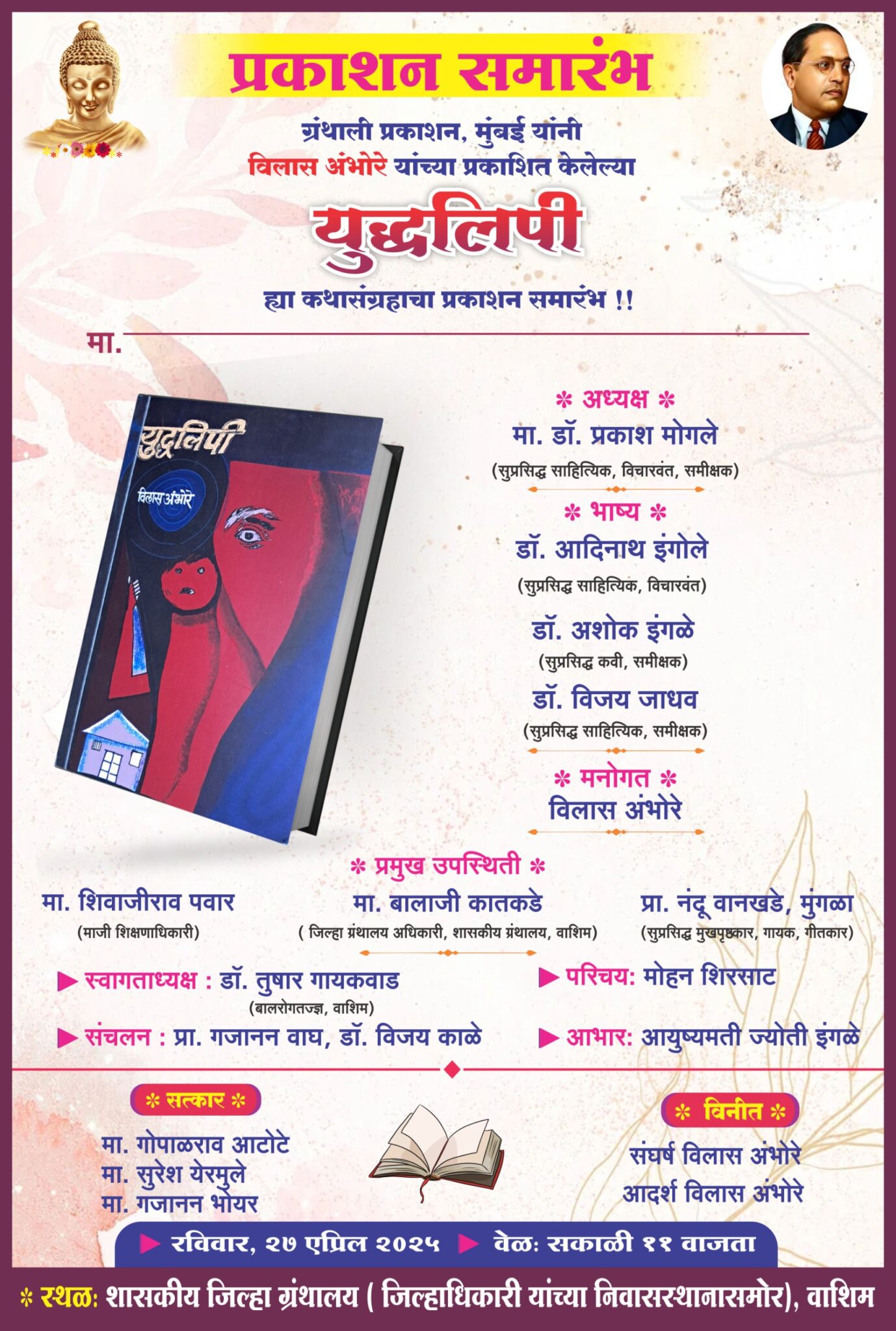 बोधात्मक कथासंग्रह म्हणजेच युद्ध लिपीवाचकांना जवळचा वाटणारा वाड्.मयप्रकार म्हणजे कथा… कुठल्याही वयाच्या वाचकांना कथा नेहमीच आकर्षित करतात. कथा ह्या आत्मबल वाढवणाऱ्या आणि प्रेरणादायीच असतात.अनेक कादंबऱ्या, कविता ,नभोनाट्यं आणि वैविध्यपूर्ण लेखांच्या घवघवीत यशानंतर_ इतक्यात प्रकाशित झालेला विलास अंभोरे सरांचा “युद्धलिपी” हा कथासंग्रह.अर्थातच अंभोरे सरांच्या सिद्धहस्त लेखणीतून उतरलेल्या कथा ह्या समृद्ध भूमीवर आपल्या अस्तित्वाचा ठसा उमटवत आहेत.ते स्वतः बेघर असले तरीही त्यांच्या कथा मात्र मनांत घर करतील अशाच आहेत.त्यांच साहित्य दालन समृद्ध, सुजलाम् सुफलाम् आहे. अनुभवसमृद्ध आहे.शिवाय कथा ह्या काल्पनिक कुंचल्यातून रंगवलेल्या नाहीत.त्या मनोरंजनासाठी निर्माण झालेल्या नाहीत.त्यांची भाषा समृद्ध आहे.त्यांचं आयुष्य हे स्वप्नातल्या कथेपेक्षा कमी नाही.त्यांनी जे भोगलं तोच त्यांच्या साहित्याचा विषय आहे.त्यांच्या कथा ह्या खाचखळग्यांनी भरलेल्या आहेत;पण त्यात मिरची मसाला नाही.जीवनाचं तत्वज्ञान सांगणाऱ्या आहेत.अंधारात राहून उजेड पसरवणाऱ्या आहेत.वास्तववादी , हुंकार गोठवणाऱ्या ,मनाला अस्वस्थ करणाऱ्या कथा आहेत.विषेश उल्लेखनिय बाब म्हणजे संपूर्ण कथा ह्या स्त्रीप्रधान आहेत.एकूण पंधरा कथांपैकी पुस्तकाचे शीर्षककथा असणारी “युद्ध लिपी”म्हणजे काहीतरी वेगळंच.युद्ध म्हणजेच संघर्ष! आणि संघर्षाशिवाय आयुष्य आणि लेखणी अर्थहीन असते.लिपी म्हणजे भाषा लिहिण्यासाठी वापरली जाणारी चिन्हं.आपण आतापर्यंत रोमन, देवनागरी,खरोष्टी,चिनी,अरबी ह्या लिप्या अभ्यासल्या होत्या.पण लेखकाच्या मुरुमाड,बरड डोक्यातून उतरलेली युद्धलिपी ही पहिल्यांदाच अभ्यासणार आहोत.वाचणार आहोत आणि त्या लिपीनं युद्ध करून जिंकणार आहोत.या लिपी द्वारे ज्ञान आणि माहिती पुढच्या पिढीला देणार आहोत.साधारणपणे युद्ध म्हटलं की डोळ्यासमोर उभा राहतो तो रक्तपात,मुडद्यांचा खच, गोळीबार, अणुस्फोट, आक्रोश,आकांत.पण कथेत मात्र आहे ते वेगळंच आणि तेही अस्वस्थ करणारं.युद्ध ही अनेक प्रकारची असतात.सायबर युद्ध, शीतयुद्ध, टोळीयुद्ध.युद्ध ही सत्तेसाठी, सांस्कृतिक, सामाजिक, धार्मिक भेदासाठी, मानवाधिकारासाठी केली जातात.प्रत्यक्ष किंवा दबाव तंत्राचा वापर करून.आधुनिक काळातील आधुनिक साहित्यिक विलास अंभोरे मात्र अक्षर आणि अंकाचा वापर करून कोणाविरुद्ध युद्ध करणार ते कळण्यासाठी युद्ध लिपी हा कथासंग्रह वाचावा लागेल.प्रत्येक कथा ही मनावर खोलवर घाव घालणारी, अंतर्मुख करणारी आहे.जगण्यासाठी प्रेरीत करणारी आणि माणसाला माणूस बनवणारी पुस्तकं यांची महती अधोरेखित करणारी कथा म्हणजे रद्दी! मुलीच्या आजारपणासाठी घरात