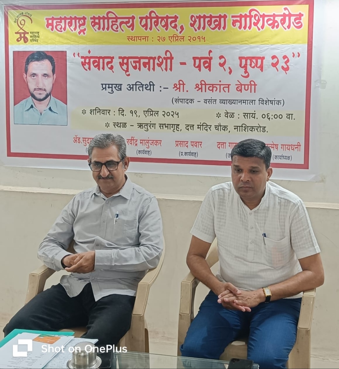 नाशिक:( प्रतिनिधी )स्वातंत्र्यपूर्व काळात आर्थिक परिस्थिती जेमतेम होती. शिवाय शिक्षण सर्वदूर पोहोचले नव्हते. ग्रंथदेखील मर्यादित आणि शिक्षित लोकांकडेच होते. त्यामुळे जनतेची ज्ञानाची भूक भागविण्यासाठी श्रवणभक्ती हाच पर्याय होता. त्यातूनच नाशिकच्या ऐतिहासिक वसंत व्याख्यानमालेचा शुभारंभ झाला. प्रामाणिक कार्यकर्त्यांचे पाठबळ आणि समाजाच्या गरजा लक्षात घेऊन नवीन काळाशी जुळवून घेतल्याने ही व्याख्यानमाला नाशिकच्या सांस्कृतिक इतिहासातील सोनेरी पान झाले आहे, असे प्रतिपादन नाशिक वसंत व्याख्यानमालेचे अध्यक्ष श्रीकांत बेणी यांनी केले. महाराष्ट्र साहित्य परिषदेच्या नाशिकरोड शाखेतर्फे संवाद सृजनाशी मालिकेच्या दुसऱ्या पर्वातील २३ वे पुष्प श्रीकांत बेणी यांनी गुंफले. नाशिकरोडच्या दत्त मंदिर चौकातील ऋतुरंग भवनमध्ये झालेल्या या कार्यक्रमाच्या अध्यक्षस्थानी माजी नगरसेवक प्रा. शरद मोरे होते. त्यांनी स्मृतिचिन्ह व ग्रंथभेट देऊन बेणी यांचे स्वागत केले. श्रीकांत बेणी म्हणाले, की वसंत व्याख्यानमालेत बदलत्या सामाजिक जाणिवांचा आढावा घेतला जातो. त्यासाठी देश-विदेशातील वक्ते आपले विचार मांडतात. त्यातून नाशिककरांची ज्ञानाची भूक भागविण्याचे, समाजजागृतीचे कार्य केले जाते. अनेकांच्या पाठबळावर या व्याख्यानमालेची वाटचाल अखंडपणे सुरू आहे. व्याख्यानमालेच्या शताब्दीनिमित्ताने सन २०२३ मध्ये वसंत व्याख्यानमाला विशेषांकाचा जन्म झाला. १९२२ ते २०२३ पर्यंत व्याख्यानमालेला येऊन गेलेल्या व्याख्यात्यांची माहिती, त्यांचे विचार, दानशूर, कार्यकर्ते, कार्यकारिणी यांची माहिती त्यात प्रसिद्ध केली आहे. पूर्वी ग्रंथ हे मोजक्या विचारवंतांकडे असायचे. आर्थिक परिस्थिती बेताची असल्याने सामान्यांकडे ग्रंथ घेण्याइतके पैसेही नसायचे. त्यामुळे श्रवणभक्ती हा सामान्यांपुढे पर्याय असायचा, असे ते म्हणाले. विलास गोडसे यांनी स्वागतकाव्य सादर केले. रेखा पाटील यांनी प्रास्ताविक केले. दशरथ लोखंडे यांनी परिचय करून दिला. योगेश कापडणीस यांनी आभार मानले. कांचन पवार यांनी पसायदान म्हटले. प्राचार्य अश्विनी दापोरकर यांनी सूत्रसंचालन केले. कार्यक्रमाला प्राचार्य संगीता बाफना, नांदगावचे माजी नगराध्यक्ष भास्कर कदम, प्रजापिता ब्रम्हकुमारीच्या गोदावरीदिदी, दिलीप बोरसे, राजेंद्र बाफणा, संगीता बेणी, ऋषिकेश डापसे, विजय काकड, रमेश औटे, गणपतराव मुठाळ, पांडुरंग चव्हाण, अलका अमृतकर, सुमन हिरे, रामचंद्र शिंदे, प्रशांत केंदळे, मधुकर सातपुते, डॉ. सुधीर ठोसर आदी उपस्थित होते.