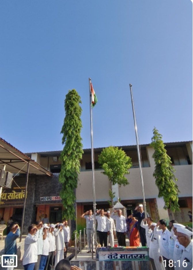 सोनांबे ( प्रतिनिधी). सोनांबे जनता विद्यालयात महाराष्ट्र दिनी ध्वजारोहण*!!सोनांबे जनता विद्यालयात महाराष्ट्र दिन व कामगार दिन उत्साहात साजरा करण्यात आला शालेय समितीचे सदस्य देवनदी पतसंस्थेचे चेअरमन बी एम पवार सर यांनी ध्वजपूजन केले तर शालेय समितीचे अध्यक्ष नंदू पाटील पवार यांच्या हस्ते राष्ट्रीय ध्वजाचे ध्वजारोहण करण्यात आले यावेळी पालक संघाचे उपाध्यक्ष नितीन पवार शालेय समिती सदस्य निवृत्ती बोडके, गजेंद्र सातपुते, सुनील पवार, कचरू शिंदे, संतोष पवार, अनिल अण्णा पवार, सदाशिव अण्णा पवार, भाऊसाहेब सखाराम पवार, कचरू पाटील पवार,संजय डावरे, अमोल पवार, माजी सैनिक हरी शिंदे,योगेश पवार, भारत पवार,खंडू शिंदे,सचिन शिंदे, पोपटराव पवार,दत्तात्रय शेळके,गणेश शिंदे,अंजली काळूंगे,हिरामण कडभाणे, विद्यालयाचे मुख्याध्यापक प्रभाकर फटांगळे ,पर्यवेक्षक दिगंबर जाधव आदी मंचावर उपस्थित होतेमुख्याध्यापक प्रभाकर फटांगळे यांनी प्रास्ताविक केले.मुंबईसह संयुक्त महाराष्ट्र होण्यासाठी 106 जण हुतात्मे झाले.आज त्या सर्वांना अभिवादन करण्याचा दिवस असल्याचे ते म्हणाले.महाराष्ट्र राज्य देशातील आघाडीचे राज्य असून मराठी माणसाने देशाच्या सर्वांगीण प्रगतीसाठी मोठे योगदान दिले असल्याचे ते म्हणाले.यावेळी विद्यालयातील प्रत्येक वर्गातील पहिल्या पाच क्रमांकाच्या विद्यार्थ्यांना मान्यवरांच्या हस्ते गुणपत्रक प्रदान करण्यात आले.नुकत्याच जाहीर झालेल्या शिष्यवृत्ती परीक्षेत पात्र झालेल्या विद्यार्थ्यांचाही यावेळी सत्कार करण्यात आला.उपक्रमशील शिक्षिका योगिता शिंदे यांनी विद्यालयातील विविध उपक्रमांची माहिती दिली.कार्यक्रमाचे अध्यक्ष नंदू पाटील पवार यांनी विद्यार्थ्यांना संबोधित करताना बिरुदेव ढोणे सारखे यश मिळवावे असे आवाहन केले.सांस्कृतिक प्रमुख दीपक भालेराव,क्रीडा शिक्षक दीपक पगारे यांनी कार्यक्रमाचे सूत्रसंचालन केले पर्यवेक्षक दिगंबर जाधव यांनी आभार मानले कार्यक्रम यशस्वी करण्यासाठी भाऊसाहेब दहिफळे,कलाशिक्षक मिलिंद पाटील,संवेदीता जाधव यांनी परिश्रम घेतले.यावेळी ज्येष्ठ शिक्षक शांताराम चांदोरे,पंडित चीने,सोपान पवार,जनाबाई सुडके,नवनाथ माळी,किरण पवार, भारती धाकतोडे, रुपावली काळे,मीना केदार,सुहास जुन्नरे,वर्षा मोरे,शबानबी कादरी,योगिता शिंदे,सोनाली देशमुख,रुपाली महाले,रोहिणी पवार,दिपाली घोटेकर,जालंदर कांडेकर,ग्रंथपाल पुष्पा घोटेकर ,सुनील पवार आदींसह शिक्षक,शिक्षकेतर कर्मचारी,विद्यार्थी,पालक मोठ्या संख्येने उपस्थित होते.