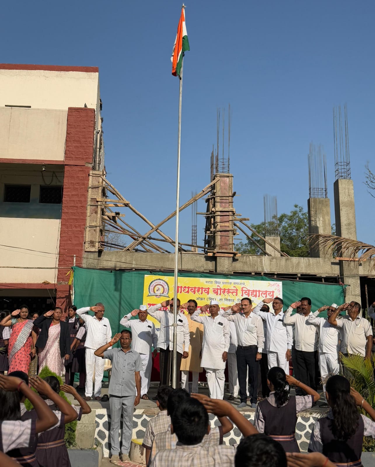 ओझर: (वार्ताहर )येथील मराठा विद्या प्रसारक समाज संस्थेच्या माधवराव बोरस्ते विद्यालयात राज्याचा ६६ वा स्थापनादिन व जागतिक कामगार दिन मोठ्या उत्साहात साजरा करण्यात आला. ध्वजारोहण शालेय समितीचे अध्यक्ष भास्करराव शिंदे यांच्या हस्ते झाले. यावेळी व्यासपीठावर ॲड धोंडीराम पगार वसंत गवळी लक्ष्मण चौधरी पुंडलिक गवळी सुभाष चौधरी रमेश पगार मनोज दहाडदे मनीषा बोडके मुख्याध्यापक सोपान वाटपाडे अभिनवच्या मुख्याध्यापिका वनिता शिरसाठ उपमुख्याध्यापक धैर्यशील पाटील पर्यवेक्षक दशरथ शिंदे सर्व शिक्षक शिक्षकेतर कर्मचारी व विद्यार्थी उपस्थित होते. अध्यक्षस्थानी शालेय समितीचे अध्यक्ष भास्करराव शिंदे होते. प्रास्ताविक मुख्याध्यापक सोपान वाटपाडे यांनी केले. फलक लेखन कला शिक्षिका मोनाली निकम यांनी केले. यावेळी विद्यालयात प्रथम पाच विद्यार्थ्यांना मान्यवरांच्या हस्ते गुणपत्रक देण्यात आले. सूत्रसंचालन शिक्षिका शितल हांडोरे यांनी केले.