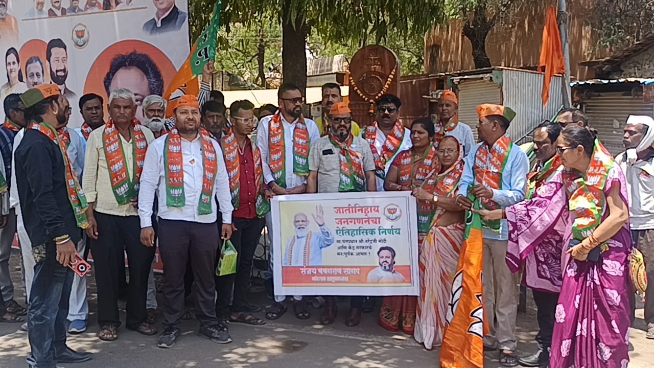 नांदगाव (प्रतिनिधी ) भारतीय जनता पार्टी नांदगाव तालुका आज श्री संजय भाऊ सानप यांच्या अध्यक्षतेखाली सर्व पदाधिकारी यांनी हुतात्मा चौकात फटाक्यांच्या आतिश बाजी ढोल ताशा च्या गजरात जल्लोष साजरा केला ,स्वतंत्र भारताच्या इतिहासात पहिल्यांदाच होणार जातीनिहाय जनगणना अंत्योदयाच्या दिशेने मोदी सरकारचे महत्त्वाचे पाऊल ! ही जातीनिहाय जनगणना भारतामध्ये सामाजिक उत्थान आणि अंत्योदयाची नवीन नांदी ठरेल, असा विश्वास आहे. या ऐतिहासिक निर्णयाबद्दल पंतप्रधान आदरणीय पंतप्रधान नरेंद्र मोदीजी व केंद्र सरकार यांचे मनःपूर्वक आभार !