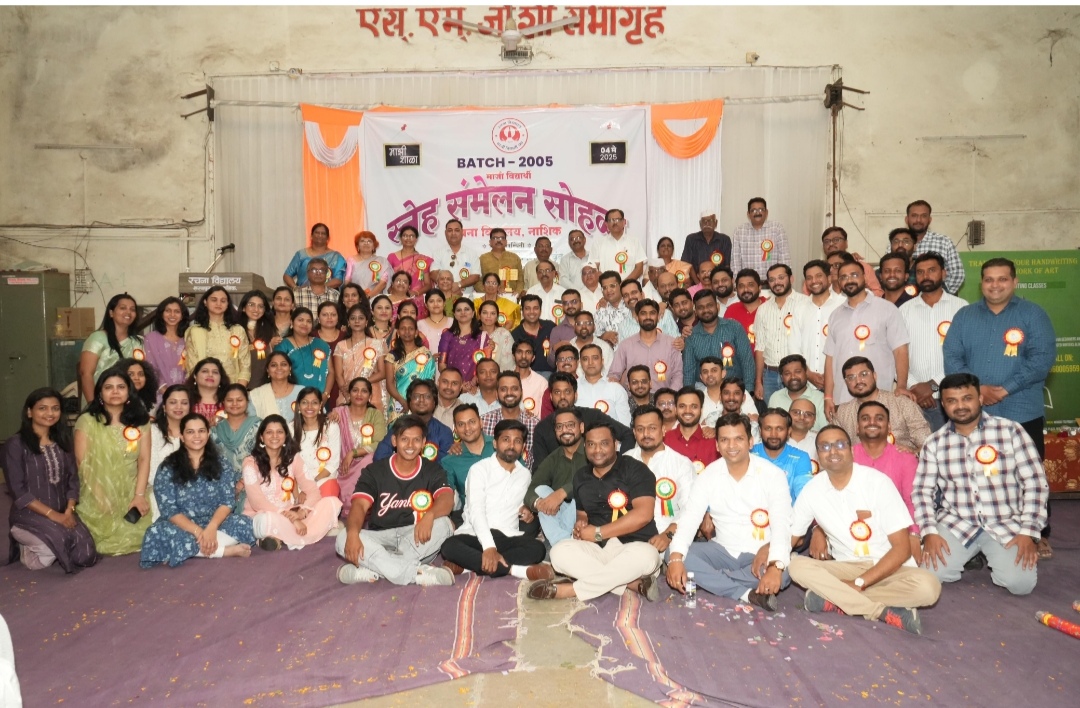 नाशिक ( प्रतिनिधी) तब्बल वीस वर्षांनी गजबजला रचना शाळेचा वर्ग 04 मे 2025 , सकाळी 9.00 वाजता रचना विद्यालयाचं प्रवेशद्वार उघडलं. प्रथमत: सहभागी विद्यार्थ्यांची नाव नोंदणी करून,लागलीच शाळा भरण्याची घंटा झाली.रचनाचे हे माजी विद्यार्थी, संस्थेचे पदाधिकारी,मान्यवर शिक्षक व शिक्षकेतर कर्मचारी हे देखील विद्यार्थ्यांबरोबरच उत्साहाने वर्गात बसले. वर्गात सदर माजी विद्यार्थ्यांची उपस्थितीबद्दल हजेरी घेण्यात आली. नंतर ओळीने मैदानात जाऊन तेथे विद्यार्थ्यांसाठी सावधान-विश्रामच्या सूचना झाल्या. लगेचच शाळेची सामुदायिक प्रार्थना व राष्ट्रगीत गायन झालं. यानंतर रचना शिक्षण संस्थेचे मान्यवर पदाधिकारी, शिक्षकवृंद व उपस्थित मान्यवरांना पुष्प वर्षावात एस.एम. जोशी सभागृहात सन्मानपूर्वक नेण्यात आलं.या सर्व आयोजनाचे सुंदर निमित्त होते, रचना विद्यालयाच्या 2005 सालच्या बॅचचे स्नेहसंमेलनाचे ! व्यासपीठावर रचना संस्थेचे व कार्यक्रमाचे अध्यक्ष श्री. सुधाकर साळी ,संस्थासचिव श्री. शांताराम अहिरे, रचना विद्यालयाचे मुख्याध्यापक श्री. किशोर पालखेडकर,तसेच शिक्षकवृंद श्री.पुरुषोत्तम ठोके, विजय जाधव, सायली महाजन, कल्पना आटवणे, श्री. यशवंतराव ठोके आदी मान्यवर व्यासपीठावर उपस्थित होते.स्नेहसंमेलन कार्यक्रमास या मान्यवरांबरोबरच रचनाचे लोकप्रिय शिक्षक श्री .निलेश ठाकूर ,नितीन सपकाळे, मनीराम चव्हाण , ज्योती कुलकर्णी ,शेलार मॅडम ,शिंदेसर, गायकवाड सर कतवारेसर, श्री.वैष्णव,श्री. कौस्तुभदादा आदी शिक्षक व शिक्षकेतर कर्मचारी यांची कार्यक्रमास विशेष उपस्थिती लाभली.प्रथमतः रचना शाळेशी संबंधित माजी पदाधिकारी, शिक्षक, विद्यार्थी व अन्य मान्यवरांचे नजीकच्या काळात दुःखद निधन झाले, अशा मान्यवरांना भावपुर्ण श्रद्धांजली अर्पण करण्यात आली.याप्रसंगी उपस्थित मान्यवरांना संयोजक विद्यार्थ्यांच्या वतीने शाल,आकर्षक स्मृतिचिन्ह, गुलाबपुष्प देऊन सन्मानीत करण्यात आले. सदर स्नेहसंमेलन कार्यक्रमाची सुरुवात दीपप्रज्वलन व प्रतिमा पूजनाने मान्यवरांच्या शुभहस्ते करण्यात आली. कार्यक्रमाचे स्वागत व सूत्रसंचालन प्रसन्न उगलमुगले यांनी केले. कार्यक्रमाचे प्रस्ताविक तेजस्वी पांढारकर यांनी तर आभार प्रदर्शन दीपक रेवगडे यांनी केले .तसेच प्रशांत ढगे, निरंजन सोनवणे ,संदीप सोनवणे यांनी कार्यक्रमाचे नेटके संयोजन केलं. याप्रसंगी शिक्षकवृंदापैकी श्री. पुरुषोत्तम ठोके,सौ. कल्पना आटवणे,सौ. विद्याताई मोहाडकर आणि मुख्याध्यापक श्री. किशोर पालखेडकर यांनी विद्यार्थ्यांना मार्गदर्शन करून शुभेच्छा दिल्या.उपस्थित विद्यार्थ्यांपैकी तेजस महाजन, संदीप सोनवणे, प्रसन्न उगलमुगले,शलाका अमृतकर यांनी मनोगते व