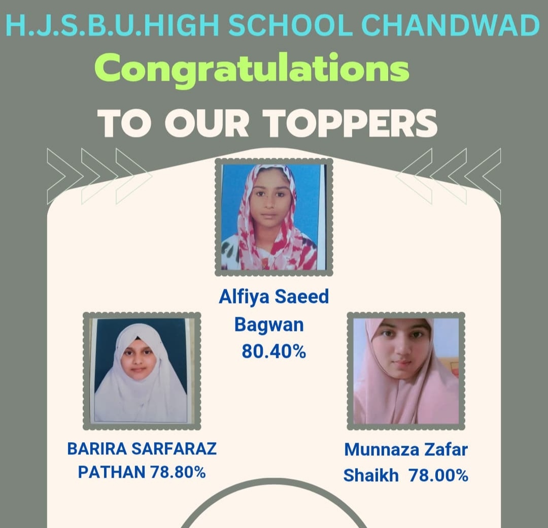 चांदवड ( प्रतिनिधी ) माध्यमिक शालांत प्रमाण पत्र परीक्षा मार्च 2025 एस एससी चा निकाल94.00% लागला आहे. . प्रथम चार विद्दार्थीनी पुढील प्रमाणे.प्रथम 1) बागवान अलफिया सईद -(80.40%) द्वितीय 2) पठण बरिरा सरफराज़ -(78.80%) तुतीय 3)शेख मुन्नजा़ जफर (78.00%) 4) शेख फातेमा मुज्तबा (72.20%) हया क्रमांका ने उत्तीर्ण विद्दाथँंचे संसथेचे चेअरमन श्री शेख रिजवान घासी. तथा समस्त सदस्य. आणी हायस्कूल चे मुख्याध्यापिका.सौ.शेख परवेजा़ शरिफ,शिक्षक/शिक्षकेतर सेवक वृंद यांनी अभिनंदन केले आहे.