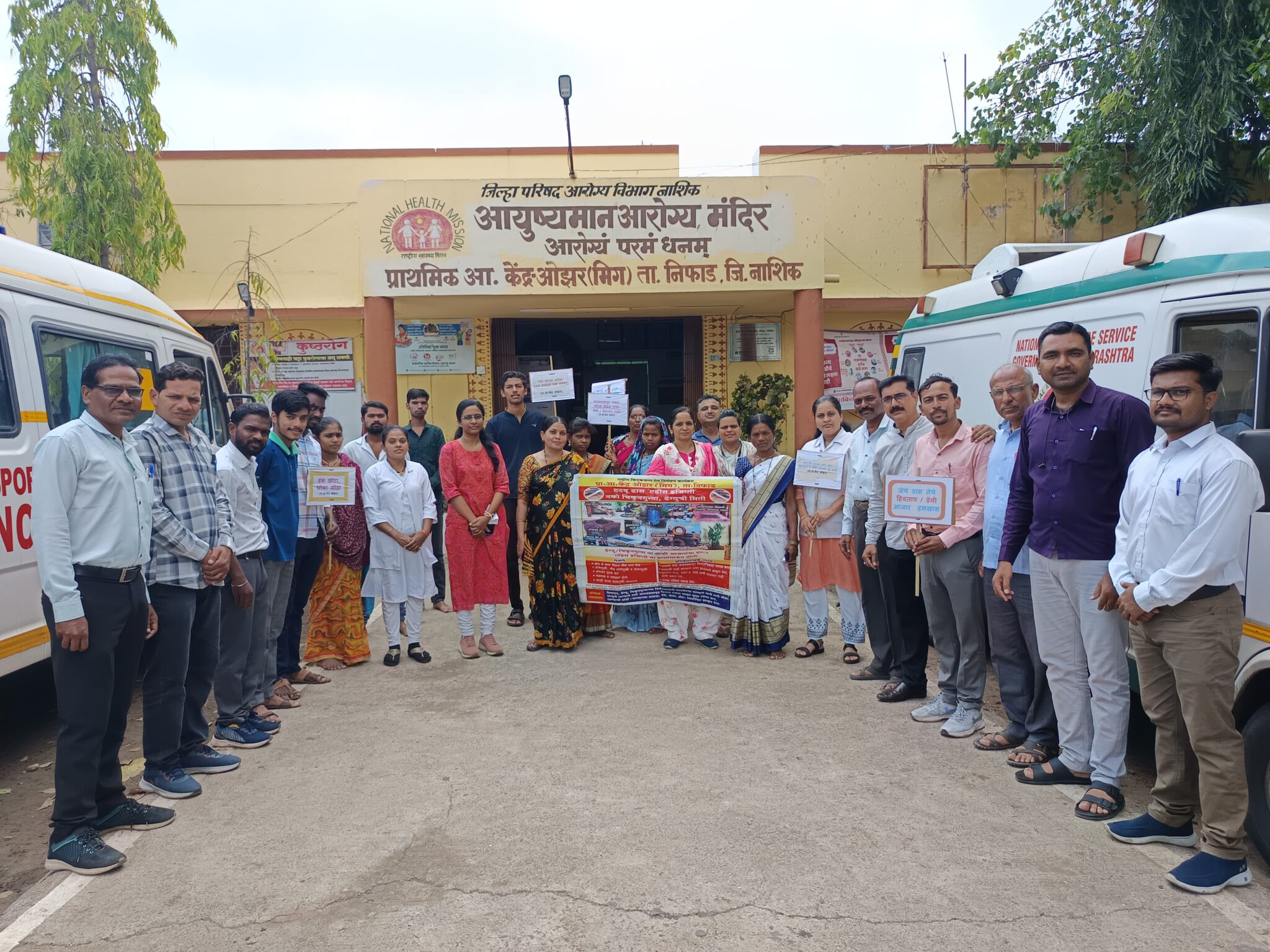 .ओझर दि.१६( वार्ताहर) राष्ट्रीय किटकजण्य रोग नियंत्रण कार्यक्रम जिल्हा नाशिक व जिल्हा आरोग्य अधिकारी नासिक, जिल्हा हिवताप अधिकारी नासिक, व तालुका आरोग्य अधिकारी निफाड यांच्या नियोजननुसार प्राथमिक आरोग्य केंद्र ओझर अंतर्गत ओझर व दीक्षी येथे राष्ट्रीय डेंग्यूदिन 16 मे रोजी साजरा करण्यात आला. त्यानुसार चालू वर्षीचे घोषवाक्य “**तपासा, आणि झाकून ठेवा :डेंग्यूला हरविण्याचे उपाय करा* “या घोषवाक्य नुसार ओझर गावात, सोनेवाडी, दात्याने, जिव्हाळे, थेरगाव, दीक्षी येथे गावातील जेष्ठ नागरिक, आशा, आरोग्य कर्मचारी, सुपरवायजर, सर्वांनी एकत्र येत रॅली काढली. गावात गप्पी मासे सोडून राष्ट्रीय डेंग्यू दिनाचे महत्व प्रा आ के ओझरचे मलेरिया सुपरवायजर रवींद्र देवरे नाना यांनी सांगितले. त्याचबरोबर वैद्यकीय अधिकारी डॉ आनंद सुर्वे, डॉ प्राची पवार, आरोग्य सहयिका भारती कदम, प्रयोगशाळा वैद्यनिक अधिकारी पल्लवी कुलकर्णी, फार्मसी ऑफिसर सुमती ठाकूर, समुदाय आरोग्य अधिकारी प्रतिभा जुनागडे, आपला दवाखानाचे वैद्यकीय अधिकारी रिद्धी पाटील, कावेरी कदम, संगीता गाडे, आरोग्य सेविका बागुल मनीषा, दीपिका भामरे, करिष्मा काकड सिस्टर, प्रतिभा चौधरी, कारले सिस्टर, स्नेहल पवार, दवणे सिस्टर, नंदा देवरे, वंदना तिरहलकर सिस्टर, आरोग्य सेवक सतीश गारोळे, प्रवीण राऊत, प्रशांत बिहाडे, मोतीराम थोरे, जयवंत राऊत, कमलेश पवार,आपला दवाखाना चे उमेश रामटेके, समीर मुरुडेश्वर, विकास पीठे, अविनाश घोडविंदे तसेच सविता ढवळे, भारती लिलके, स्वाती पवार, मेघा वाघ, मनीषा निर्भवणे, निर्मला जाधव, उन्हवणेताई, चित्रा सुतार, पूनम गांगुर्डे, सुनीता तोंगारे, प्रा आ के स्वाती सिस्टर, सोनाली सोनवणे सिस्टर, सुवर्णा सिस्टर, स्वाती चंदणशीव सिस्टर, लभडे सिस्टर , मोरे दीपाली क्षयरोग टेक्निशियन, प्रशिक्षक बागुल HLL लॅबचे कर्मचारी यांनी प्रभातफेरी काढून *किमान आठवड्यातून एकदा कोरडा दिवस पाळला पाहिजे. प्रत्येक घरी गप्पी मासे सोडण्याचा संकल्प कर्मचाऱ्यांनी घेतला*.जागतिक डेंग्यू दिन सामुदायिक शपथ घेऊन भागात कुठेही डेंग्यू रुग्ण होऊ न देण्याचा संकल्प केला. पाण्याच्या टाक्यांवर झाकणे ठेवा, पाणी उघड्यावर ठेऊ नका अशी माहिती रॅलीत देण्यात आली. रॅलीसाठी सर्व जिल्हा परिषद शाळेतील शिक्षक, अंगणवाडी सेविका, नगर परिषद कर्मचारी व नागरिक मोठ्या संख्येने उपस्थित होते.