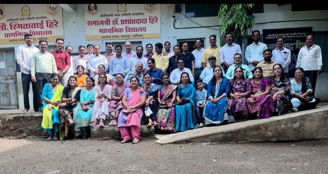 नाशिक:- (प्रतिनिधी ) प्रशांतदादा हिरे माध्यमिक विद्यालययाचे दहावीच्या बॅचचे विद्यार्थी शाळेत पुन्हा एकदा एकत्र आले. सुट्टीचे दिवस असूनही शाळेची घंटा झाली. रांगेत उभे राहून प्रार्थनेला विद्यार्थी सज्ज झाले. रांगेत आपण ज्या वर्गात बसत होतो त्यावेळेस आपण कोणत्या जागेवर बसत होतो ती ती जागा निवडली. शिक्षक विद्यार्थी एकत्र आले अन शाळकरी कार्यक्रमाला सुरुवात झाली. विद्यमान शाळेचे मुख्याध्यापक पृथ्वीराज मगर यांनी स्वागत व प्रास्ताविक केले माजी मुख्याध्यापक योगाचार्य अशोक पाटील हे अध्यक्षस्थानी होते. श्रीमती बच्छाव, श्रीमती बेडसे, चव्हाणके डी .एम.( योगायोगाने यांचा वाढदिवस असल्याने शुभेच्छा दिल्या) यांनी मनोगत व्यक्त केले.प्राथमिक चे मुख्याध्यापक सोपान निकम, कार्यक्रमासाठी हजर होते. माजी विद्यार्थ्यांमध्ये वैभव ढिकले, विवेक दुकळे यांनी कार्यक्रमाचे नियोजन व धुरा सांभाळली. हिमाली जोशी, स्वाती हासे, नलिनी घुले, यांनी वतीने मनोगत व्यक्त केले. शिक्षकांचा यथोचित सत्कार केला. शाळेचे ऋण म्हणून पाच माजी विद्यार्थ्यांनी हजार रुपये देणगी दिली प्रेरणादायी असा कार्यक्रम झाला. शेवटी एस .एम. पाटील यांनी आभार मानले. सगळ्यांनी हॉटेल संस्कृतीमध्ये भोजनाचा आस्वाद घेतला व त्याचबरोबर मनोरंजनाचे कार्यक्रमही केले.