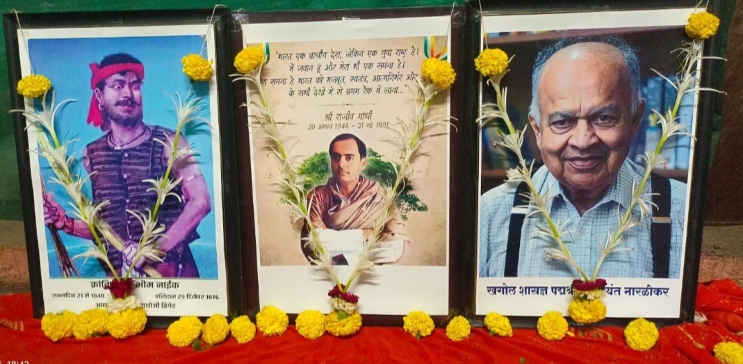 त्यांच्याच एका माणसाच्या हेरगिरीच्या आधारे, १८६१ मध्ये ब्रिटिश त्याला त्याच्या जंगलातील लपण्याच्या ठिकाणाहून अटक करण्यात यशस्वी झाले. त्याला दोषी ठरवण्यात आले, त्याला जन्मठेपेची शिक्षा सुनावण्यात आली आणि अंदमान बेटांच्या सेल्युलर तुरुंगात पाठवण्यात आले. २९ डिसेंबर १८७६ रोजी अंदमान बेटांवर त्याचा मृत्यू झाला.अशा शहिद भीमा नायक यांना जयंतीनिमित्त विनम्र अभिवादन तसेच *माजी पंतप्रधान ‘भारतरत्न’ राजीव गांधी यांची आजस्मृतिदिनानिमित्त*…तंत्रज्ञान क्षेत्रात भारताला ताकदवान बनवण्याचं त्यांनी कायम स्वप्न बाळगलं आणि ते पूर्ण करण्यासाठी धोरणात्मक निर्णयही घेतले. राजीव गांधी यांनी घेतलेल्या महत्वाच्या निर्णयाबाबततंत्रज्ञान क्षेत्रात महत्त्वाचे योगदान देऊन, भारताला आधुनिक जगाची कवाडं उघडून देणाऱ्या माजी पंतप्रधान ‘भारतरत्न’ राजीव गांधी यांनी भारताला संगणकयुगात आणण्यासाठी धडपणारा हा तरुण नेता भारतीयांच्या मनात अढळ स्थान निर्माण करुन गेला..राजीव गांधी यांनी घेतलेले हे निर्णय आपण कधीच विसरु शकणार नाही अशा माजी पंतप्रधान राजीव गांधी या विनम्र अभिवादन *ज्येष्ठ खगोलशास्त्रज्ञ, विज्ञान लेखक, पद्मविभूषण महाराष्ट्र भूषण डॉ. जयंत नारळीकर यांचं दु:खद निधन!*ज्येष्ठ खगोलशास्त्रज्ञ डॉ. जयंत नारळीकर झोपेत (१९ मे रात्री ) यांचे निधन झाले. डॉ. नारळीकर हे केवळ खगोलशास्त्रज्ञच नव्हते, तर विज्ञान लेखकही होते. त्यांनी भूमिकांसाठी ओळखले जात. त्यांनी लिहिलेल्या विज्ञानकथा आणि विज्ञानलिषयक लेखन लोकप्रिय ठरल्या आहेत.डॉ. नारळीकरांची फलज्योतिषाला आव्हान देणारी भूमिका असो, वा विज्ञान सोपं करून सांगण्यासाठी केलेलं मराठी विज्ञानकथालेखन असो, डॉ नारळीकर कायमच समाजाला सतत विचार करायला प्रवृत्त करणारं व्यक्तिमत्व राहिलं आहे. महाराष्ट्र अशा या महान शास्त्रझाल भारत देश मुकला आहे त्यांच्या जाण्याने खगोल अंतराळ संशोधन जगात मोठी पोकळी निर्माण झाली त्यांना भावपूर्ण आदरांजली वाहण्यात आली *सुत्रसंचलन किरण मुठे,प्रास्ताविक विजय मुठे,आभार आकाश धोंगडे* यावेळी महामित्र दत्ता वायचळे, आद्यक्रांतीकारक राघोजी ब्रिगेडचे सहसंस्थापक विजय मुठे,किरण मुठे,आकाश धोंगडे ,प्रभाकर गाडेकर, शरद जाधव, प्रकाश गुंजाळ, राहुल वाघमारे,मुना गुंजाळ,लखन पाचोरे आदी.उपस्थित होते