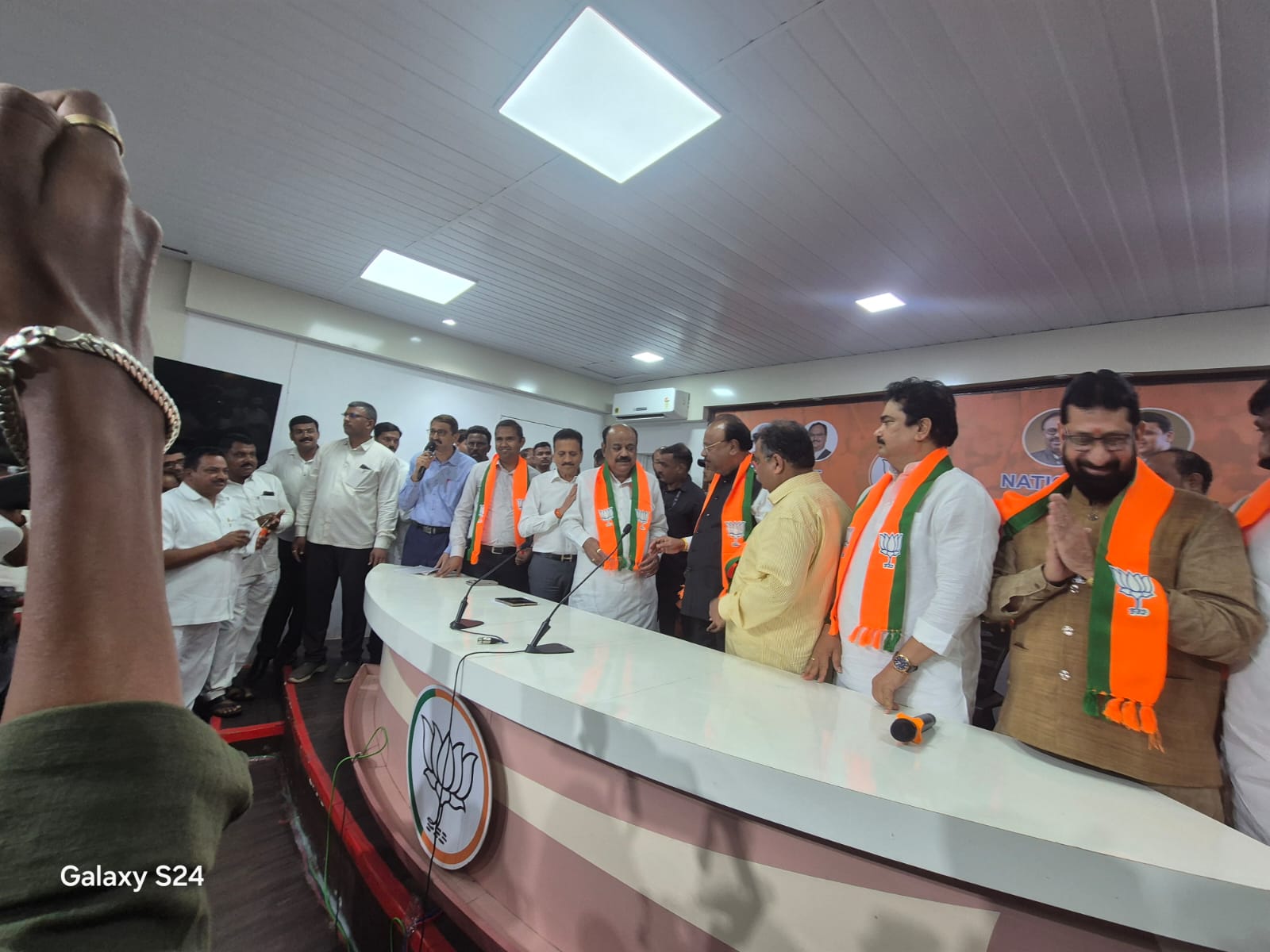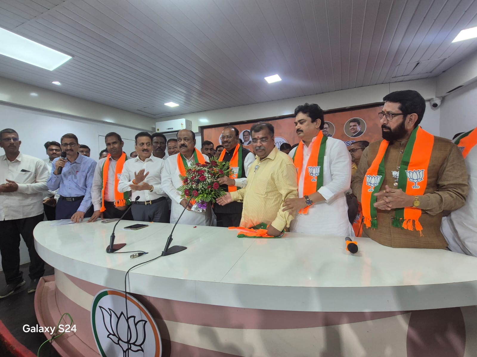 .दिलीपभाऊ वाघ यांच्या या प्रवेशाने पाचोरा-भडगाव तालुक्यातील भाजप कार्यकर्त्यांमध्ये चैतन्य संचारले असून राजकीय चर्चांना आणि अपेक्षांना नवे वळण लाभले आहे. गेल्या काही महिन्यांपासून त्यांच्या संभाव्य पक्षप्रवेशाच्या चर्चा रंगत होत्या. अखेर त्या चर्चांना पूर्णविराम देत त्यांनी अधिकृतपणे भाजपमध्ये प्रवेश करत भाजपला स्थानिक पातळीवर मोठे बळ दिले आहे.या ऐतिहासिक प्रवेश सोहळ्यावेळी पाचोरा व भडगाव तालुक्यातील राजकीय, सामाजिक आणि सहकारी क्षेत्रातील अनेक मान्यवर पदाधिकारी यांनी देखील दिलीप वाघ यांच्या सोबत मुंबई येथे भाजपमध्ये प्रवेश केला यात प्रामुख्याने पाचोरा तालुका सहकारी शिक्षण संस्थेचे चेअरमन तथा पाचोरा न.पा.राष्ट्रवादी काँग्रेसचे गटनेते संजय वाघ, कृषी उत्पन्न बाजार समितीचे संचालक तथा पाचोरा पं.स.माजी सदस्य विजय पाटील, शेतकरी सहकारी संघाचे संचालक तथा पाचोरा पं.स.चे माजी सभापती अनिल पाटील, राष्ट्रवादी काँग्रेसचे जिल्हा कार्याध्यक्ष शालीग्राम मालकर, भडगाव न.पा.माजी नगराध्यक्ष तथा कृषी उत्पन्न बाजार समितीचे संचालक शामकांत भोसले, कृषी उत्पन्न बाजार समितीचे माजी सभापती राजेंद्र पाटील, पाचोरा पिपल्स बँकेचे संचालक तथा राष्ट्रवादी काँग्रेसचे जिल्हाउपाध्यक्ष भागवत महालपुरे, पाचोरा न.पा.माजी उपनगराध्यक्ष वासुदेव महाजन, जळगाव जिल्हा मजुर संस्थेचे चेअरमन प्रकाश पाटील, पाचोरा शेतकरी संघाचे संचालक शिवदास पाटील, पाचोरा शेतकरी संघाचे चेअरमन सुनिल पाटील, खडकदेवळा सरपंच सुदाम वाघ, माजी नगरसेवक तथा शेतकरी संघाचे संचालक शरद पाटील, शेतकरी संघाचे संचालक प्रविण गुजर, मच्छिंद्र थोरात, शशी पाटील, माजी नगरसेवक अशोक मोरे, माजी पं.स.सदस्य ललित वाघ, बंजारा क्रांती दल जिल्हाध्यक्ष संजय राठोड, माजी नगरसेवक वाशिद बागवान, अंतुर्ली सरपंच वसंत पाटील, माजी नगरसेवक रणजित पाटील, सु.भा.पाटील प्राथ.विद्यामंदिरचे चेअरमन जगदीश सोनार, राष्ट्रवादी काँग्रेस जिल्हाउपाध्यक्ष प्रशांत नैनाव, माजी नगरसेवक प्रकाश चौधरी, अजय अहिरे, अॅड. अविनाश सुतार, भगवान मिस्तरी, विनोद पाटील, अमोल ठाकूर, सुनिल चौधरी, गिरीष राठोड, प्रशांत महाले, गणेश पाटील, मोहसीन टकारी, अॅड. ललित सुतार, सतिष देशमुख, हरीष पाटील, निलेश पाटील, तेजस पाटील, सचिन शिंदे, गौरव पाटील, चेतन पाटील, युक्तेश बाविस्कर, महेश माळी, कृष्णराव साळूंखे, शामकांत वाडेकर, दिपक पाटील, रविंद्र पाटील, राजेंद्र साळूंखे, दत्तात्रय पाटील, वसंत पाटील, राजेंद्र पाटील, मनोज वाघ, प्रदिप वाघ, सदाशिव नरवाडे, युनूस मेंबर, संदीप कोल्हे, महेंद्र मानसिंग पाटील, रंगराव पाटील, भगवान पाटील, योगेश पाटील, नंदलाल पाटील, सुरेश कोळी, आबा पाटील, वाल्मिक पाटील, सच