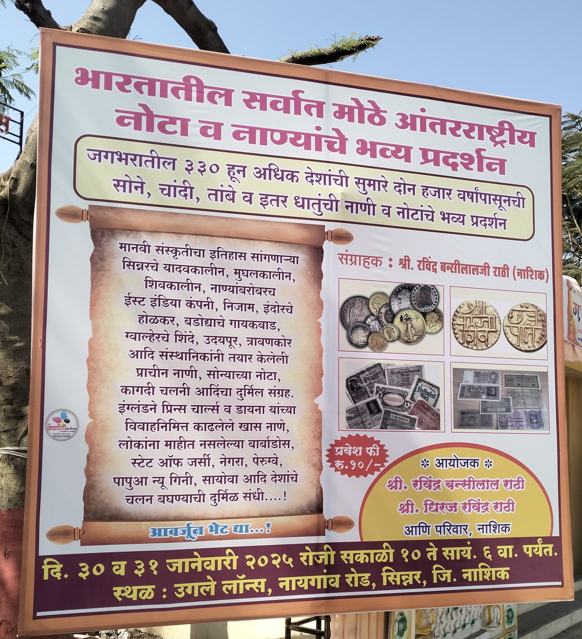 .श्यामसुंदर झळके सिन्नर (प्रतिनिधी) — प्रत्येकाला कोणता कोणता छंद असतो व तो जोपासण्यासाठी तो खूप मेहनत घेऊन यशस्वी होतो व त्याला प्रसिद्धीही मिळते. असाच एक छंडवेदा माणूस नाशिकचे रविंद्र बन्सीलाल राठी यांनी बालपणापासून ऐतिहासिक दुर्मिळ नानी व नोटा जमा करण्याचा छंद लागला व तो त्यांनी मोठ्या कष्टाने पूर्णत्वास नेला.केवळ देशातीलच नव्हेतर तब्बल ३३६ देशातील दुर्मिळ नाणी व नोटा यांचा संग्रह केला व तो जनतेपर्यंत पोहचावा यासाठी परिश्रम करून त्याचे प्रदर्शन भरवावे ही संकल्पना प्रत्यक्षात उतरविली.