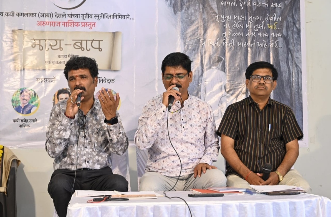 नाशिक ( प्रतिनिधी)ज्येष्ठ साहित्यिक कमलाकरआबा देसले यांच्या तृतीय स्मृतिदिनानिमित्त मालेगाव येथे देसले परिवाराने आयोजित केलेल्या कविता सादर करताना अरुणराज प्रस्तुत ‘मायबाप’ या मैफिलीचे सादरकर्ते कवी राजेंद्र उगले आणि अरुण इंगळे.’मायबाप’ ही आई-वडिलांबद्दलची कृतज्ञता व्यक्त करणारी मैफल आज मालेगाव येथे सादर करताना वेगळीच भावना मनामध्ये होती. कविवर्य कमलाकरआबा आणि नाशिकच्या समस्त कविकुळाचा अतिशय जवळचा स्नेहबंध. आमच्या पिढीतले अनेक कवी घडण्यासाठी कविश्रेष्ठ खलील मोमीन सर आणि कमलाकरआबा यांनी अतोनात मेहनत घेतलेली आहे. तीन वर्षांपूर्वी कमलाकर आबांनी जगाचा निरोप घेतला. मात्र त्यांच्या परिवाराने त्यांच्या स्मृती जागवण्यासाठी गतवर्षी गझल संमेलन आणि यंदा मायबाप या मैफिलीचे आयोजन केले होते. कमलाकर आबांच्या स्मृती जागवताना त्यांच्या एकापेक्षा एक सरस रचनांनी राजेंद्र उगले आणि अरुण इंगळे या दोन्ही प्रतिथयश कवी-गायक आणि सादरकर्त्यांनी मैफिलीत रंग भरला. मालेगावमधील साहित्य क्षेत्रासह विविध क्षेत्रातील दिग्गज आणि देसले परिवाराचे सर्व आप्तेष्ट मोठ्या संख्येने उपस्थित होते. जवळजवळ अडीच तास रंगलेली ही अनोखी काव्यमैफील आणि आबांच्या स्मृती जागवताना आबांचा मित्र असल्याचा अभिमान द्विगुणीत झाला. देसले परिवाराचे सर्व सदस्य या मैफिलीसाठी खऱ्या अर्थाने राबले आणि आबांचा समर्थ वारसा त्यांचा परिवार तितक्याच जोमाने पुढे नेत आहे; हे बघून अतिशय समाधान वाटले. आबांच्या स्मृतींना विनम्र अभिवादन…!*
