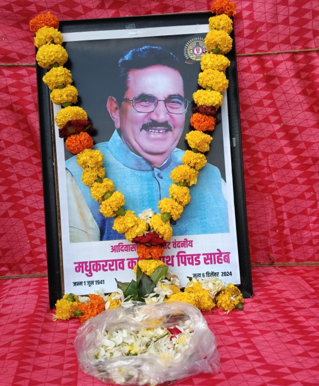 या कार्यक्रमाची सुरुवात वंदनीय मधुकर पिचड साहेब यांच्या प्रतिमेस पुष्पहार अर्पण करून करण्यात आली.या कार्यक्रमाचे अध्यक्ष महामित्र दत्ता वायचळे म्हणाले की, वंदनीय मधुकर पिचड साहेब यांचा जन्म एका कोळी महादेव आदिवासी कुटूंबात झाला.त्यांचे वडील शिक्षक होते.त्यांनी पुण्याच्या फर्ग्युसन महाविद्यालयात आपले शिक्षण पूर्ण केले.त्यांना समाजसेवेची आवड असल्यामुळे त्यांनी राजकारणात प्रवेश केला.१९७२ साली ते अहिल्या नगरचे जिल्हा परिषद सदस्य झाले.पुढे ते पंचायत समितीचे सभापती झाले.वंदनीय मधुकर पिचड साहेब हे भारतीय राजकारणी, सामाजिक कार्यकर्ते आणि महाराष्ट्र सरकारमधील कॅबिनेट मंत्री होते. त्यांनी १९८० ते २००९ पर्यंत अकोले विधानसभा मतदारसंघातून महाराष्ट्र विधानसभेचे सदस्य म्हणून काम केले आहे.ते अनेक वेळा सरकार मध्ये मंत्री राहिले होते.आदिवासींच्या न्याय हक्कासाठी आयुष्यभर त्यांनी संघर्ष केला.ते अखिल भारतीय आदिवासी विकास परिषदेचे राष्ट्रीय कार्याध्यक्ष होते.माजी आदिवासी विकास मंत्री निसर्गवासी मधुकररावजी पिचड साहेब यांनी त्यांच्या कार्यकाळात आदिवासी समाज व इतर समाजाच्या सर्वांगीण विकासासाठी मोठं योगदान दिलं आहे.मग ते आदिवासींच्या विकासासाठी आदिवासींसाठी वेगळं बजेट असो ,आदिवासी मध्ये बोगसांची घुसखोरी रोखण्यासाठी केलेला कायदा, आदिवासींच्या न्याय हक्कासाठी पेसा कायद्याची निर्मिती,आदिवासी विकास भवन, आदिवासींच्या शिक्षणासाठी आश्रमशाळांची निर्मिती, आद्यक्रांतिकारक राघोजी भांगरे यांचा व आदिवासी क्रांतिकारकांचा इतिहास पुढे आणण्याचं काम, भंडारदरा धरणाला आद्यक्रांतिकारक राघोजी भांगरे यांचं नामकरण,शेतकऱ्यांसाठी निळवंडे धरणाची निर्मिती,अगस्ती सहकारी साखर कारखाना निर्माण करण्याचं काम असे अनेक कामं मधुकररावजी पिचड साहेब यांनी केले.अखिल भारतीय आदिवासी विकास परिषदेचे माजी राष्ट्रीय कार्याध्यक्ष माजी आदिवासी विकास मंत्री निसर्गवासी मधुकररावजी पिचड साहेब यांचं ०६ डिसेंबर रोजी प्रदिर्घ आजाराने ८४ व्या वर्षी दुःखद निधन झालं.त्यांचा अंत्यविधी ०७ डिसेंबर ला अकोले तालुक्यातील राजूर या त्यांच्या गावी झाला.ते निसर्गात विलीन झाले.त्यांच्या अंत्यविधीला मोठा जनसागर उसळला होता.या लोकनायकाचा मृत्यू ०६ डिसेंबर २०२४ रोजी झाला होता ते आदिवासींचे बाबासाहेबच म्हणता येतील अशा या जलनायकास विनम्र अभिवादन!या कार्यक्रमाचे सूत्रसंचालन विजय मुठे प्रास्ताविक रामु इदे तर आभार दत्ताभाऊ माळी यांनी मानले.यावेळी महामित्र दत्ता वायचळे, माजी नगरसेवक रुपेश मुठे, आद्यक्रांतिकारक राघोजी ब्रिगेड चे संस्थापक रामु इदे, सहसंस्थापक विजय मुठे, बाळासाहेब म