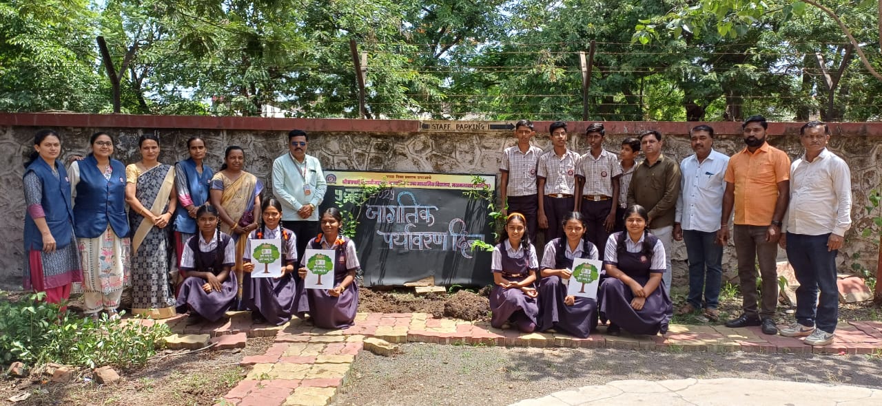 मखमलाबाद विद्यालयात जागतिक पर्यावरण दिनानिमित्त वृक्षारोपण करतांना प्राचार्य संजय डेर्ले,उपप्राचार्या विमल रायते,पर्यवेक्षक सुनील पाटील,शिक्षकवृंद, शिक्षकेतर कर्मचारी व विद्यार्थी