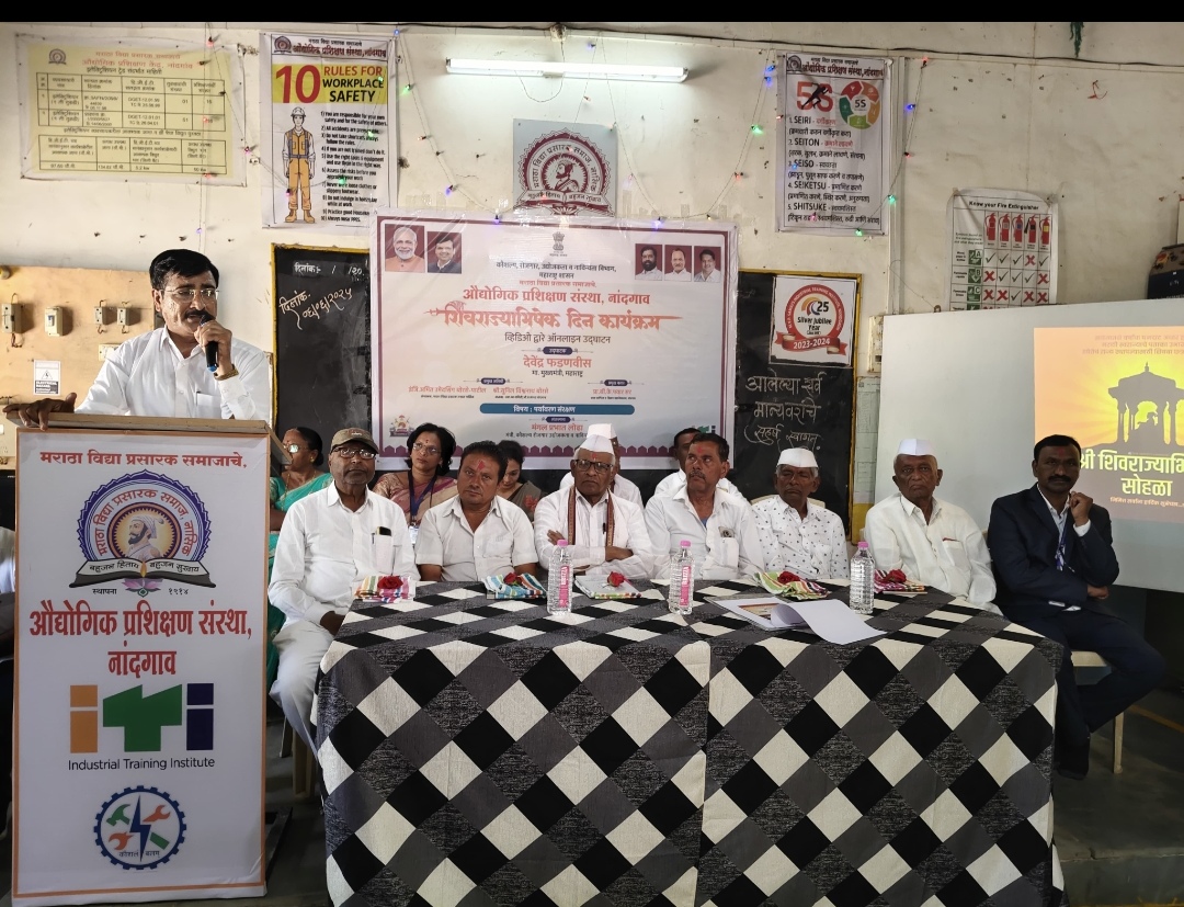 कार्यक्रमाची सुरुवात मुख्यमंत्री देवेंद्र फडणवीस तसेच व्यवसाय शिक्षण व प्रशिक्षण विभागाच्या अप्पर मुख्य सचिव मनिषा वर्मा यांच्या ऑनलाईन भाषणाने झाली. यानंतर कार्यक्रमासाठी उपस्थित मान्यवरांच्या हस्ते छत्रपती शिवाजी महाराजांच्या प्रतिमेचे तसेच भगवान विश्वकर्मा यांच्या प्रतिमेला पुष्पहार अर्पण करून झाली. कार्यक्रमाचे व्याख्याते प्रा.बी.के.पवार यांनी पर्यावरण संरक्षण या विषयावर उपस्थितांना मार्गदर्शन केले. पर्यावरणाचा होत असलेला र्हास, अवेळी पर्जन्यवृष्टी, जंगल तोड करून शहरे उभारणी तसेच कारखाने तसेच वाहनांमधील निर्माण होणारे प्रदूषण व त्याचा पर्यावरणावर होणारा परिणाम हे अत्यंत घातक असून यावर पर्याय म्हणून वेळीच सतर्क होऊन पर्यावरण संरक्षण करणे गरजेचे आहे आणि त्यासाठी आपण आपल्या स्वतःपासून सुरुवात करून जास्तीत जास्त झाडे लावून त्यांची देखभाल करणे तसेच परिसराची स्वच्छता ठेवणे तसेच नैसर्गिक संसाधनांचे जतन करणे हे प्रत्येक भारतीय नागरिकाचे आद्य कर्तव्य आहे आणि त्याचे पालन करणे हे काळाची गरज असल्याबाबत सांगितले या सोबतच व्याख्याते प्रा.बी.के.पवार यांनी नागरी कर्तव्य आणि शिष्टाचार आणि कुटुंब प्रबोधन, स्वदेशी विचारांचा प्रसार तसेच सामाजिक समरसता, या विषयांवर मौलिक मार्गदर्शन केले. यावेळी अध्यक्षीय भाषणात प्रमुख अतिथी विजय काकळीज यांनी छत्रपती शिवाजी महाराज यांनी स्वराज्य संघटन करीत असताना तांत्रिक कौशल्यांचा वापर कसा केला. शिव काळापासून ते आजपर्यंत ज्या व्यक्तींकडे तांत्रिक कौशल्य आहेत अशा व्यक्तींना अनन्यसाधारण असे महत्त्व आहे त्यामुळेच तांत्रिक शिक्षण ही काळाची गरज असुन त्यासाठी आय टी आय हा उत्तम पर्याय असल्याचेही विशद केले यासोबतच शिवाजी महाराजांच्या काळातील वेगवेगळे प्रसंग सांगुन शिवरायांच्या जिवनपटाला उजाळा दिला.अध्यक्षीय भाषणानंतर राष्ट्रगीताने कार्यक्रमाची सांगता करण्यात आली. यावेळी मराठा विद्या प्रसारक समाज संस्थेचे जेष्ठ सभासद तसेच स्थानिक व्यवस्थापन समिती सदस्य निवृत्ती खालकर,प्रकाश घोटेकर, बाबुलाल सावंत, अरविंद बोरसे, संजय कदम,न्यू इंग्लिश स्कूल,नांदगाव शाळेच्या मुख्याध्यापिका ज्योती काळे, पर्यवेक्षक अविनाश साळुंके, होरायझन अकॅडमीच्या प्राचार्या पुनम मढे,बाह्य रुग्ण कक्षाच्या वैद्यकीय अधिकारी डॉ.प्रज्ञा पगार,औ.प्र.संस्था प्राचार्य कैलास जाधव, उपप्राचार्य सोमनाथ ठाकरे या सोबतच विविध आस्थापनांचे शाखाप्रमुख तसेच प्रतिनिधी व संस्थेचे आजी माजी प्रशिक्षणार्थी उपस्थित होते. यावेळी औ.प्र.संस्थेत वार्षिक अभ्यासक्रमासोबत इतर उपक्रम राबविले जातात अशा उपक्रमांमधील काही निवडक प्रकल्प प्रदर्श