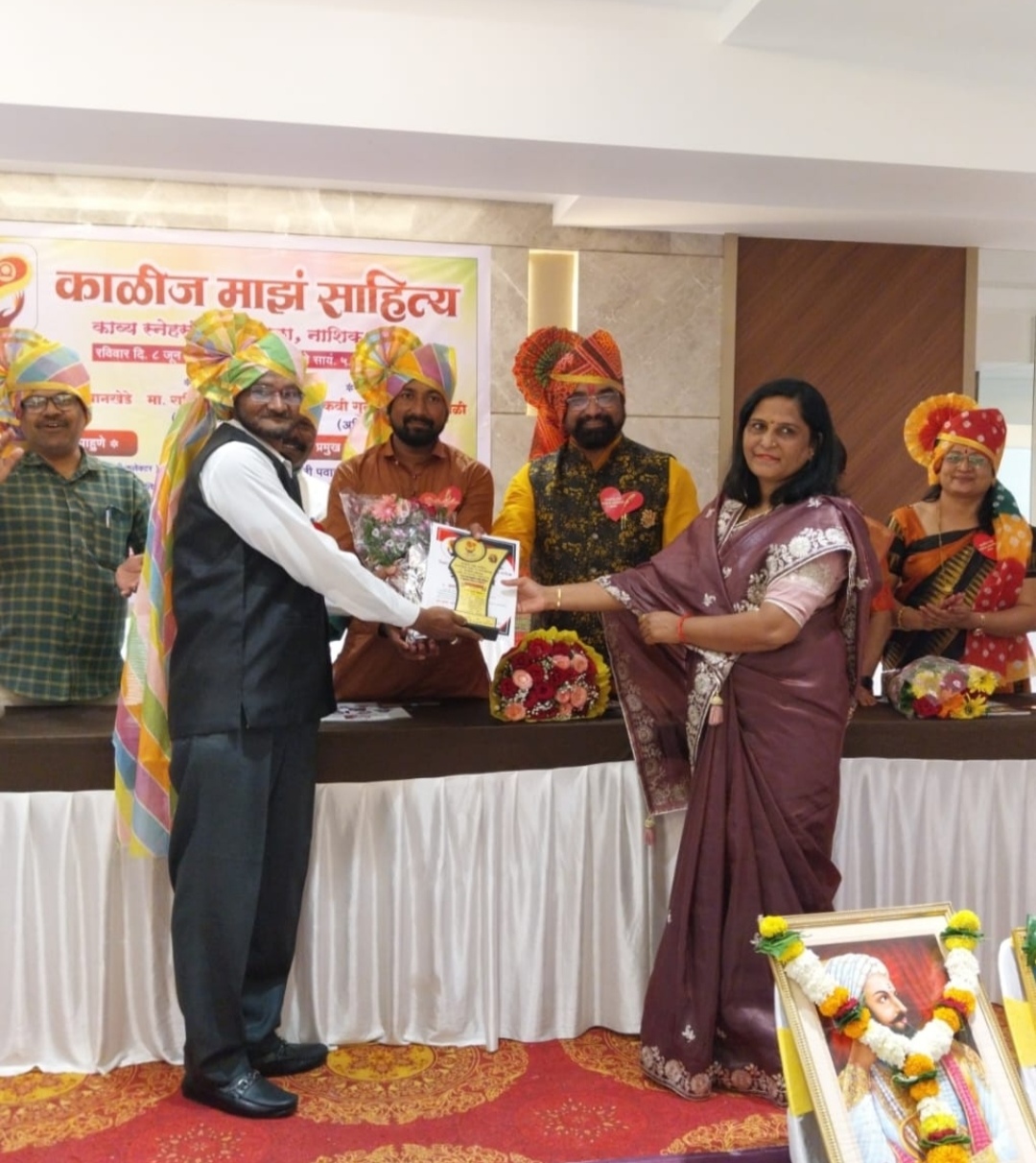 नाशिक [ ग्रामिण वृत्तसेवा साहेबराव नंदन तात्या ] काळीज माझं साहित्य व सामाजिक साहित्य समुह छत्रपती संभाजी नगर यांच्या सामाजिक संस्थेच्या तीसऱ्या वर्धापन दिनानिमित्त आयोजित करण्यात आलेल्या राज्यस्तरीय कवी संमेलन नाशिक येथे पार पडलेल्या काव्य मैफीलीत नाशिक येथील अलककार सुभाष उमरकर यांना राज्यस्तरीय जीवनगौरव पुरस्काराने जेष्ठ साहित्यिक चंद्रकांतदादा वानखेडे यांच्या अध्यक्षतेखाली व शुभहस्ते, तसेच कवी, संपादक गुलाबराजा फुलमाळी, गिरणा गौरव प्रतिष्ठानचे अध्यक्ष सुरेश पवार, साहित्यिक रविंद्रदादा मालूजंकर , संस्थेच्या अध्यक्षा सुरेखा बेंद्रे, कवयित्री सौ. शारदा भामरे व इतर मान्यवरांच्या उपस्थितीत उमरकरांना मानाचा फेटा, शॉल श्रीफळ बुके ट्रॉफी व सन्मान पत्र देऊन टाळ्यांच्या गजरात सन्मानित करून गौरविण्यात आले. उमरकर यांना या आधीही अनेक राज्यस्तरीय पुरस्कार प्राप्त झाले आहेत. शेकडो सन्मान पत्रांचे ते मानकरी असून त्यांच्या नावावर लघुकथांचा अलक नामक संग्रह प्रसिद्ध आहे. मध्यमवर्गीय कुटुंबातील प्रतिकुल परिस्थिती गरीबीची असली तरी साहित्य क्षेत्रात ते श्रीमंत आहेत. दिलदार मनाच्या हळव्या साहित्यिकाचा सन्मान हा खऱ्या अर्थाने नाशिकच्या मातीचा सन्मान असल्याच्या प्रतिक्रिया उमटत आहेत.
