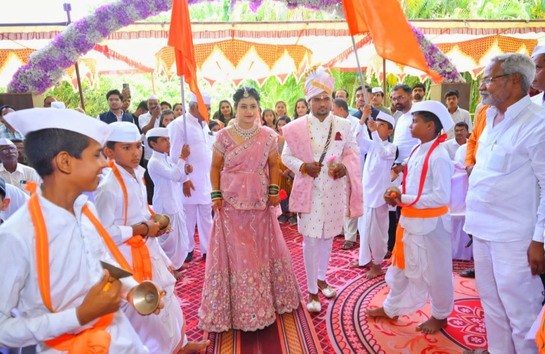 नाशिक:- (प्रतिनिधी). आजकाल विवाह सोहळा म्हटलं की हौसेच्या नावाखाली काही अनावश्यक गोष्टी केल्याचे निदर्शनास येत असते. प्रतिष्ठेच्या स्पर्धेत वधू आणि वर दोहोंकडील परिवार अशी नाहक भरडला जात असतो. परंतु आजची पिढी आणि तरुणांनी आदर्श घ्यावा; असा अनोखा विवाह सोहळा नुकताच कोपरगाव तालुक्यातील चासनळी येथे संपन्न झाला. नाशिक तालुक्यातील पळसे गावातील वारकरी सांप्रदायिक ज्ञानेश्वर गायधनी यांचे पुत्र आणि कामगारनेते अशोकराव गायधनी यांचे पुतणे मृदूंगाचार्य हभप चि.ऋषिकेश आणि चासनळी येथील ज्येष्ठ पत्रकार भगीरथ गाडे यांची सुकन्या चि.सौ.का.श्वेता या दोन्ही वधुवरांनी शिवराज्याभिषेक दिनी ज्ञानोबा-तुकोबांचा जयघोष करत विवाहमंडपात पाऊल टाकले. छ.शिवरायांना नमन करून सामूहिक शिवस्तुती घेत शिवराज्याभिषेक सोहळा साजरा केला. दोन्ही परिवारांनी उपस्थितांना भक्तीशक्तीचे अनोखे दर्शन घडवून आणले. ऋषिकेश विद्युत अभियंता असून उत्तम मृदूंगाचार्य आहेत. त्यांच्या भगिनी रूपाली ठोंबरे नामवंत कीर्तनकार आहेत. वधू श्वेता याही विद्युत अभियंता आहेत. अशा उच्चशिक्षित वधुवरांसह त्यांच्या परिवाराने दाखवलेल्या अनोख्या उपक्रमाचे कौतुक सर्वत्र होत आहे. सोहळ्यास महाराष्ट्रातील नामवंत वारकरी, दिग्गज गुणिजण तसेच सामाजिक, राजकीय आणि शैक्षणिक क्षेत्रातील मान्यवर उपस्थित होते.