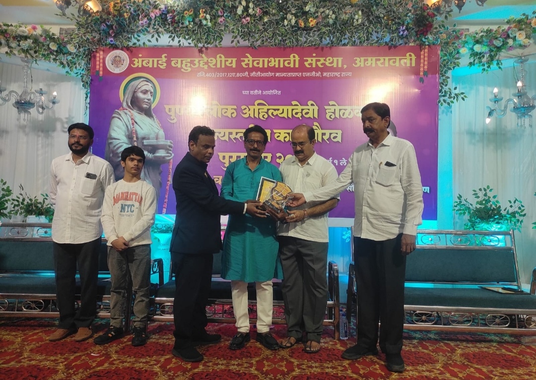 अमरावती:(बबनराव वि.आराख)श्री अंबाई बहूउद्देशिय सेवाभावी संस्था अमरावतीच्या वतीने राज्य स्तरीय पुरस्कार सोहळा२०२५ चे आयोजन करण्यात आले,त्यामध्ये सदर पुरस्कार वितरण मान्यवरांचे हस्ते करण्यात आले. क्षितीज पॅलेस हॉल मध्ये हा पुरस्कार गौरव सोहळा संपन्न झाला . सौ. माधुरी सचिन चव्हाण संस्थापक, अध्यक्षा,अंबाई बहू उद्देशीय सेवाभावी संस्था अमरावती यांच्या वतीने प्रथमच पुण्यश्लोक आहिल्या बाई होळकर राज्य स्तरीय कार्य गौरव पुरस्कार -२०२५ सोहळ्याचे आयोजन करण्यात आले. मा . गणेशजी शिंदे साहेब उपआयुक्त अमरावती, तसेच आमदार मा सौ . सुलभाताई खोडके ., कमलाताई गवई, लेडी गव्हर्णर, डॉ . मनिष शंकर गवई, जनसंपर्क अधिकारी,केंद्रीय न्याय व सामाजिक मंत्री भारत सरकार तसेच मराठी ‘ नाळ ‘ या चित्रपटाचे बालयुवक कलाकार श्रीकांत पोकळे ‘आणि इतर मान्यवर यांच्या प्रमुख उपस्थितीत सदर राज्य स्तरीय कार्य गौरव पुरस्कार,केळवद येथिल रहिवासी कवी, शाहीर,लेखक, मनोहर पवार यांना प्रदान करण्यात आला . यावेळी राज्य भरातून अनेक समाज सेवक विविध कार्य करणारे सेवाभावी उपस्थित होते.कवी, शाहीर मनोहर पवार केळवदकर यांनी साहित्य शाहीरी कला काव्य क्षेत्रात मोलाचे योगदान दिले असून महाराष्ट्रभर त्यांचे कार्य सुरु आहे . तसेच त्यांना शासनाचे संस्थांचे विविध पुरस्कार प्राप्त झाले असून त्यांचे कार्य अविरत सुरु असून सामाजिक कार्य, साहित्यिक चळवळ, तसेच कलाक्षेत्रात त्यांनी विविध जिल्हयात सहभाग नोंदविला असून ते विविध सामाजिक संघटन, पदाधिकारी आहेत . कवी मनोहर पवार यांनीअनेक काव्य, पोवाडे, अभंग, लावणी, शाहीरी फटके आदी काव्यप्रकार लिहीले असून ते विविध प्रसार माध्यमात सातत्याने लिखाण करीत असून अखिल भारतीय मराठी साहित्य संमेलनात घूमान, पंजाब प्रांतात सहभाग नोंदविला आहे . तसेच चित्रपट नाट्य अभिनय करीत आहेत . चित्रपट महामंडाळाचे सदस्य असून शासनाचे मानधन प्राप्त शाहीर कलावंत आहेत . शेतकरी कुटुंबात जन्म घेवून ते समाज कार्य करीत आहे . या पूर्वीही अनेक राज्यस्तर पुरस्कार गौरवाचे ते मानकरी ठरले असून अहोरात्र लेखन सेवा सुरु आहे.