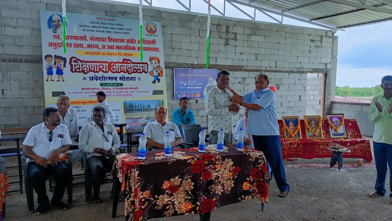 न्यायडोंगरी (प्रतिनिधी)१६ जून २०२५श्री शनैश्वर सेवाभावी संस्था, न्यायडोंगरी संचलित,*स्व. अण्णासो गंगाधर शिवराय आहेर आदिवासी अनुदानित प्राथमिक, माध्यमिक व उच्च माध्यमिक आश्रमशाळा, न्यायडोंगरी, ता. नांदगाव, जि. नाशिक* येथे आज दिनांक १६ जून २०२५ रोजी शालेय प्रवेशोत्सव अत्यंत उत्साहपूर्ण व आनंददायी वातावरणात साजरा करण्यात आला.कार्यक्रमावेळी न्यायडोंगरी परिसरातील प्रतिष्ठित नागरिक, शाळेतील विद्यार्थी व त्यांचे पालक मोठ्या संख्येने उपस्थित होते.