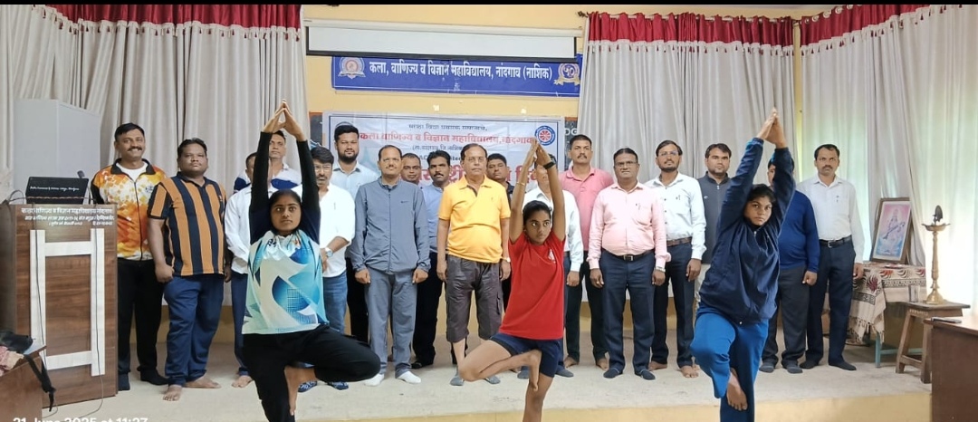 नांदगाव (प्रतिनिधी ) चांगल्या शारीरिक आणि मानसिक आरोग्यासाठी नियमित योग- प्राचार्य डॉ. आर. एन. भवरे*कला, वाणिज्य आणि विज्ञान महाविद्यालय, नांदगाव येथे ११ वा आंतरराष्ट्रीय योग दिन कार्यक्रम आयोजित करण्यात आला होता. हा दिवस शनिवार, दिनांक २१/०६/२०२५ रोजी सकाळी १०:०० वाजता महाविद्यालयाच्या सेमिनार हॉलमध्ये उत्साहात साजरा करण्यात आला.