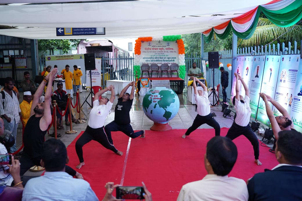 नाशिक येथेआंतरराष्ट्रीय योग दिनाच्या पार्श्वभूमीवर नाशिक रोड रेल्वे स्थानकावर तीन दिवसीय योग महोत्सवाचे आयोजन करण्यात आले भारत सरकारच्या माहिती आणि प्रसारण मंत्रालयांतर्गत कार्यरत केंद्रीय संचार ब्युरो, नाशिकचे क्षेत्रीय कार्यालय, योगदर्शन योग केंद्र नाशिक रोड आणि नाशिक रोड रेल्वे प्रशासन यांच्या संयुक्त विद्यमाने दिनांक १९ ते २१ जून या कालावधीत हा उपक्रम राबविण्यात आला.या महोत्सवाचा उद्घाटन समारंभ दिनांक १९ जून रोजी रेल्वे स्थानकाच्या दर्शनीय जुन्या तिकीट कार्यालयाजवळ पार पडला. उद्घाटन प्रसंगी नाशिक रोड रेल्वे स्थानकाचे प्रबंधक मनोज कुमार श्रीवास्तव, माजी नगरसेविका व सामाजिक कार्यकर्त्या डॉ. सीमा ताजने, केंद्रीय संचार कार्यालयाचे प्रसार अधिकारी सदाशिव मलखेडकर, योगदर्शन योग केंद्राचे योगगुरु बाळासाहेब मोकळ आणि सामाजिक कार्यकर्ते विलास थोरात उपस्थित होते.कार्यक्रमाच्या पहिल्या दिवशी रांगोळी स्पर्धा, महिला व पुरुष गटातील योगासन स्पर्धा घेण्यात आल्या. यावेळी . प्रा . बाळासाहेब मोकळ यांनी “एक पृथ्वी, एक आरोग्यासाठी योग ” या २०२५च्या आंतरराष्ट्रीय योग दिनाच्या संकल्पनेशी सुसंगत अशी 51योगासने व 14 सूर्यनमस्कार प्राकृतिक पृथ्वी प्रतिकृती वर सादर करत चौथ्यांदा विश्वविक्रम प्रस्थापित करण्याचा प्रयत्न केला. मर्यादित जागेत स्थिरता व समतोल राखत प्राकृतिक पृथ्वीवर केलेले हे सादरीकरण उपस्थितांच्या विशेष कौतुकास पात्र ठरले. यावेळेस नागरिकांना मार्गदर्शन करताना प्रा मोकळ यांनी योग साधनेचा आपल्या दैनंदिन जीवनामध्ये समावेश करून आपले स्वतःचे शारीरिक व मानसिक स्वास्थ्य कसे चांगले ठेवू शकतो यासाठी योगसाधना करण्याचे आव्हान केले आपले आरोग्य चांगले असेल तर आपण जीवनामध्ये सर्व काही साध्य करू शकतो त्यामुळे आरोग्यम् धनसंपदा या अनुषंगाने आपण आपल्या स्वतःसाठी एक तास दिला तर नक्कीच आपले परिवाराचे समाज व देशाच्या आरोग्य चांगले राहू शकते हा मोलाचा संदेश त्यांनी यावेळी दिला कार्यक्रमाचे प्रास्ताविक केंद्रीय संचार ब्युरो नाशिकचे प्रसार अधिकारी सदाशिव मलखेडकर यांनी यांनी केले यावेळेस त्यांनी त्यांच्या कार्यालयात मार्फत चालणाऱ्या अनेक समाज प्रबोधन कार्यक्रमांची माहिती दिली त्याच बरोबर योगसाधना सर्व नागरिकांनी आपल्या जीवनात रोज योग सराव करावा असे आव्हान केले.कार्यक्रमात योगशिक्षिका अश्विनी पुरी यांनी सादर केलेली योग विषयक कविता लक्षवेधी ठरली. तसेच ‘ट्रँगल योगा’च्या वतीने राज बंबानी, अश्विनी पुरी, लोकेश सोनी, अभिजीत पुरी, प्रियांका कुलकर्णी आणि प्राजक्ता कुलकर्णी यांनी योग नृत्य सादर करत प्रेक्षकांची मने जिंकली.रेल्वे प्रबंधक 