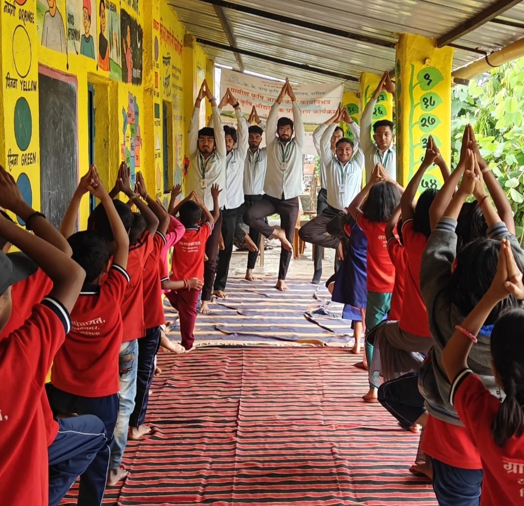 . यशवंतनगर, २१ जून – येथील जिल्हा परिषदेच्या शाळेत आंतरराष्ट्रीय योग दिन मोठ्या उत्साहात व शिस्तबद्ध पद्धतीने साजरा करण्यात आला. विद्यार्थ्यांनी शाळेच्या प्रांगणात एकत्र येऊन विविध योगासनांचे सादरीकरण केले.कार्यक्रमाची सुरुवात परिपाठाने झाली. त्यानंतर सहशिक्षिका शिरसाठ मॅडम यांनी विद्यार्थ्यांना योगाचे महत्त्व समजावले आणि प्रात्यक्षिक करून दाखवले. मुख्याध्यापिका पाटील मॅडम यांनी आपल्या मार्गदर्शनपर भाषणात योग दिनाचे महत्त्व, आणि नियमित योगाभ्यासाचे फायदे समजावून सांगितले.कार्यक्रमात कृषीदूत वाघ गौरव , तांबे आदेश, टेकवडे प्रणव , तांबोळी साहिल,वायाळ अवधूत, येवले सिद्धांत,इंगळे सुमेधकुमार यांनी सक्रिय सहभाग घेतला. विद्यार्थ्यांनी ताडासन, वृक्षासन,वक्रासन, अनुलोम-विलोम, कपालभाती , आदी योगासने सादर केली.कार्यक्रमात कृषीदूत यांची विशेष भूमिका होती. त्यांनी कार्यक्रमाच्या आयोजनात समन्वय साधला, विद्यार्थ्यांमध्ये योगाविषयी जनजागृती केली आणि योगासने सादर करणाऱ्या विद्यार्थ्यांचे मनोबल वाढवले. त्यांच्या नेतृत्वामुळे कार्यक्रम अधिक प्रेरणादायी ठरला.कार्यक्रमाच्या सांगता क्षणी सर्व विद्यार्थ्यांनी दररोज नियमित योगाभ्यास करण्याचा संकल्प केला. या उपक्रमामुळे शाळेत आरोग्यदायी आणि सकारात्मक वातावरण निर्माण झाले.