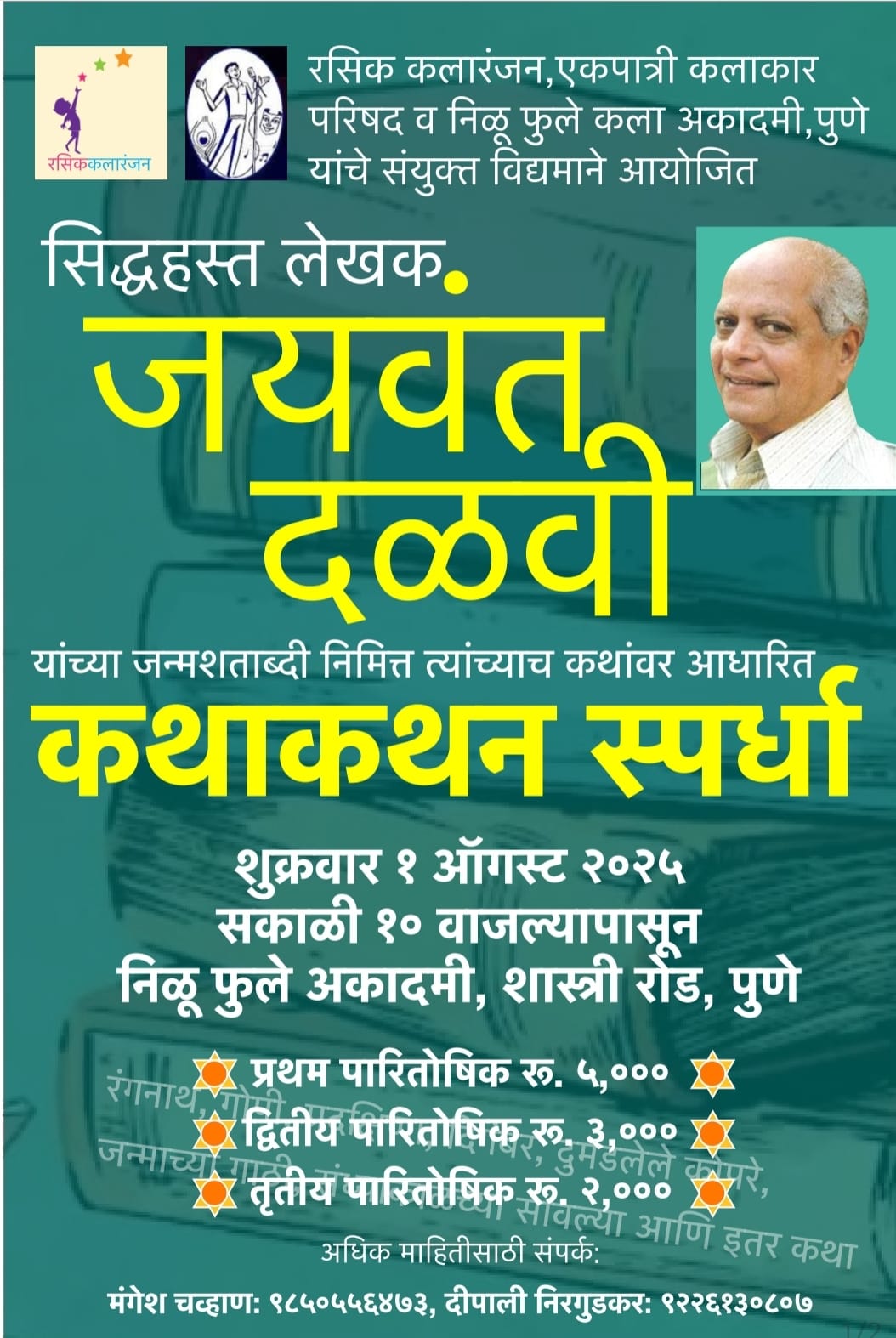 नाशिक:-(प्रतिनिधी )नाशिकच्या सामाजिक, सांस्कृतिक आणि साहित्यिक क्षेत्रात नेहमीच अग्रेसर असणाऱ्या कविवर्य नारायण सुर्वे सार्वजनिक वाचनालयाच्या वतीने दरवर्षी कविवर्य नारायण सुर्वे राज्यस्तरीय साहित्य पुरस्कार दिले जातात. मराठी साहित्यातील कथासंग्रह, कादंबरी आणि काव्यसंग्रह अशा तीन साहित्य कृतीस *नारायण सुर्वे साहित्य पुरस्कार* देण्यात येणार आहेत. (वर्ष २५ वे) उपरोक्त उल्लेखलेल्या प्रत्येक साहित्य कृतीस पुरस्काराचे स्वरूप शाल, रोख रक्कम ₹१००००/-, स्मृतिचिन्ह आणि मानपत्र असे दिले जाते. सदर पुरस्कारांसाठी लेखक, कवींनी *०१ एप्रिल २०२४ ते ३१ मे २०२५* या कालावधीत प्रकाशित झालेल्या आपल्या साहित्यकृतींच्या प्रत्येकी दोन प्रती, स्वपरिचय पत्र व दोन पासपोर्ट साईज फोटो इ. *सचिव, कविवर्य नारायण सुर्वे सार्वजनिक वाचनालय, मानव सेवा केंद्र, (मायको हॉल) राजे संभाजी स्टेडियम शेजारी, सिंहस्थनगर, सिडको, नाशिक ४२२००९ फोन: ०२५३ २३७८२४४/ 9890680243* या पत्यावर पोस्टाने पाठवावेत अथवा वाचनालयात समक्ष येऊन पोहच करावेत.*साहित्य पाठवण्याची अंतिम मुदत दि. ३१ जूलै २०२५ पर्यंत असेल.*तरी यावर्षी प्रकाशित झालेल्या साहित्यांचा पुरस्कारासाठी सहभाग नोंदवावा असे आवाहन वाचनालयाच्यावतीने करण्यात येत आहे. सचिव कविवर्य नारायण सुर्वे सार्वजनिक वाचनालय, नाशिक