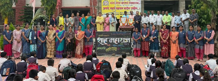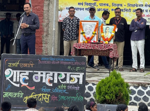 याप्रसंगी राजर्षी शाहू यांच्या जीवनावर विद्यार्थ्यांनी भाषणे केली. अध्यक्षीय भाषणात मुख्याध्यापक सोपान वाटपाडे यांनी, मराठा विद्या प्रसारक संस्था उभारणीत राजर्षी शाहूंचा सिंहाचा वाटा असल्याचे विद्यार्थ्यांना सांगितले. संस्कृत महाकवी कालिदास यांच्या विषयी देवयानी बाविस्कर या विद्यार्थिनीने मनोगत व्यक्त केले. फलक रेखाटन कलाशिक्षिका मोनाली निकम मोहन क्षीरसागर यांनी केले. कार्यक्रमास सर्व शिक्षक शिक्षकेतर कर्मचारी उपस्थित होते सूत्रसंचालन शिक्षक हेमंत भट यांनी केले तर आभार क्रीडा शिक्षक प्रभाकर लवांड यांनी मानले.