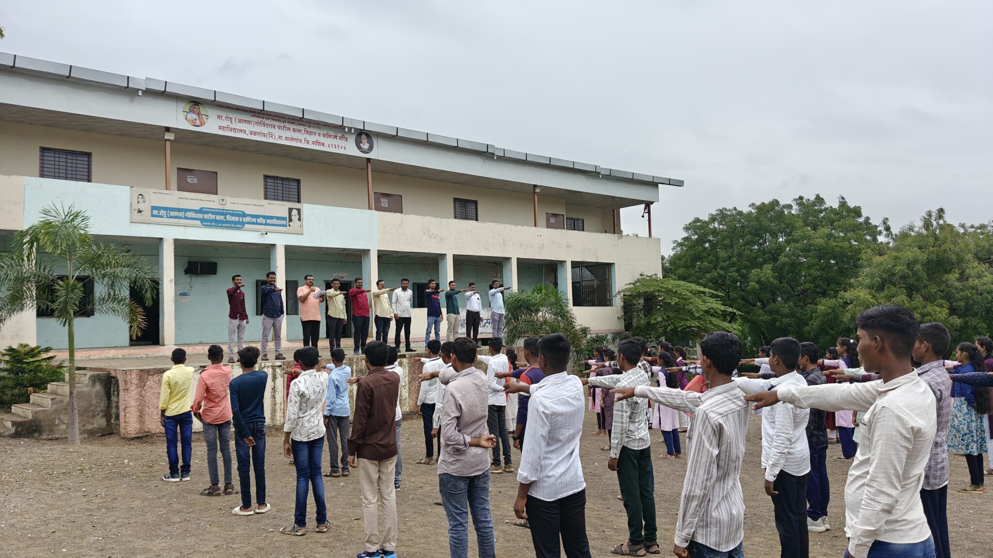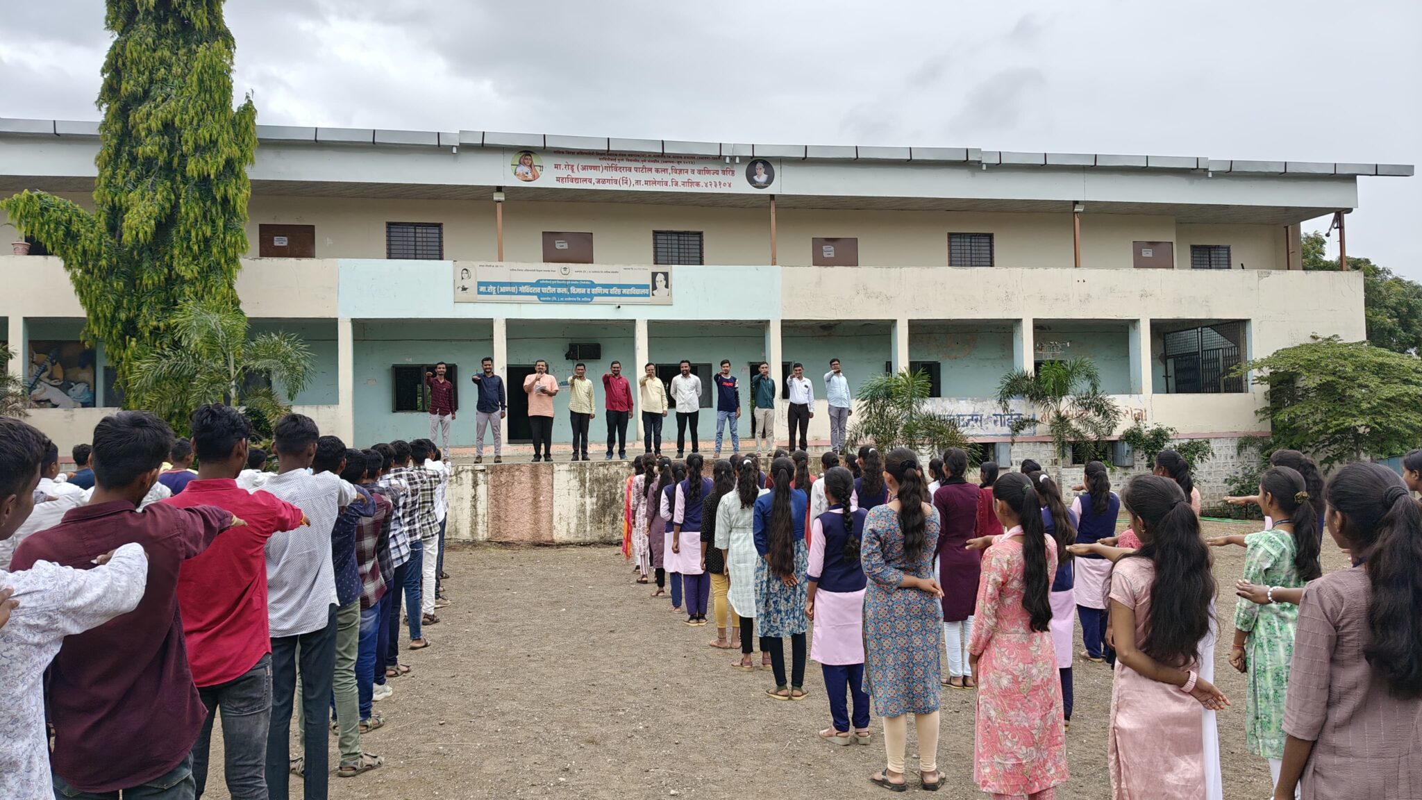 कार्यक्रमाच्या अध्यक्षस्थानी जेष्ठ प्राध्यापक एस. टी. जाधव होते. प्रमुख अतिथी म्हणून संस्थेचे सचिव महेंद्र पाटील, समन्वयक निंबाजी शिंदे होते. समवेत प्राचार्य पी. एन. पवार, पर्यवेक्षक व्ही. डी. काळे, प्रा. डी. एस. जमधाडे, प्रशांत देवरे, ए. व्ही. अहिरे, योगेश ठोके, सुदय बोरसे, शारीक अन्सारी, सर्व शिक्षक, शिक्षिका व शिक्षकेतर कर्मचाऱ्यांसह बहुसंख्येने विद्यार्थी उपस्थित होते. सूत्रसंचालन प्रा. सी. डी. राजपूत यांनी केले तर आभार प्रा. पी. यु. शिंदे यांनी मानलेत.