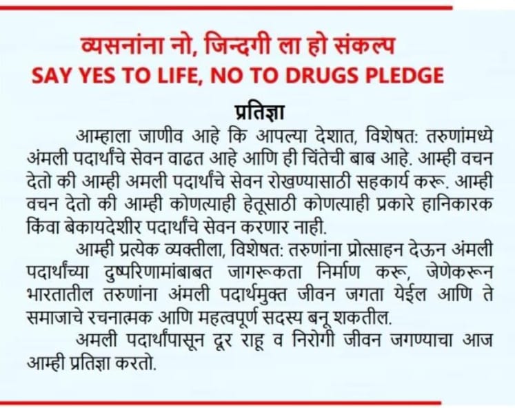 जळगाव निंबायती (वार्ताहर) – विद्यार्थ्यांमध्ये वाढत असलेले अमली पदार्थाविषयीची उत्सुकता व वाढत चाललेली व्यसनाधीनता त्यातूनच अनेक गैरप्रकार वाढत आहेत, पुण्यासारख्या सुसंस्कृत शहरामध्ये अमली पदार्थांनमुळे वाढलेली अपघातांची व गुन्ह्याची संख्या पाहता शालेय विद्यार्थ्यांना अशा व्यासनाविषयी जागरूकता वाढावी त्यांना व्यसनांपासून परावृत्त करणे गरजेचे आहे. ‘एक जागरूक कुटुंब, एक सुरक्षित समाज’ या घोषवाक्यानुसार व्यसनाला नाही म्हणायला शिका असे आवाहन प्रा. अमोल अहिरे यांनी केले. ते येथील अहिल्यादेवी शिक्षण संस्थेच्या गो. य. पाटील विद्यालयात आयोजित जागतिक अंमली पदार्थ सेवन विरोधी दिनानिमित्त आयोजित कार्यक्रमात बोलत होते. प्रसंगी प्रा. अहिरे यांनी विद्यार्थ्यांना शपथ दिली.