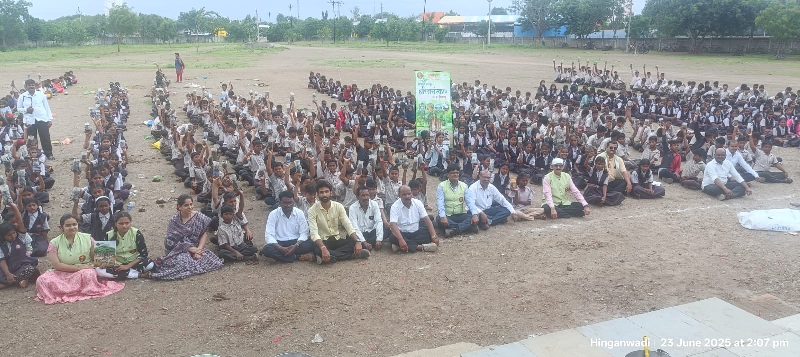 यावेळी बोलताना शाह म्हणाले, निसर्ग हा जैवविविधतेने नटलेला आहे. निसर्गामध्ये संतुलन राहावे, स्वच्छ, हरीत व जलयुक्त पर्यावरण मिळावे म्हणून पक्षांचे महत्त्व आहे. शहरात निर्माण होणाऱ्या काँक्रीटच्या जंगलामुळे पक्षांना दाणा, पाणी, घरटे बनवण्यासाठी वृक्ष मिळत नाही. त्यामुळे पक्षाची संख्या दिवसेंदिवस कमी होत आहे. जैवविविधता टिकून मुलांमध्ये हरित संस्कार व्हावेत या उद्देशाने हिरवांकुरतर्फे पक्षांसाठी दाणा, पाणी यांची स्टॅन्ड, छोटी घरटी बनवण्यासाठी कार्यशाळेतून जनजागृती आवश्यक आहे. स्वच्छ हरित व जलयुक्त पर्यावरणाचे संस्कार विद्यार्थी दशेतूनच मुलांवर व्हावेत याकामी हिरवांकुरच्या ३२ टिम विविध गाव व शहरांमध्ये काम करत आहे. पावसाच्या पाण्याचे पुनर्भरण करणेकामी शहरात ४० जलमंदिरांचे (शोषखड्डे) निर्माण केले आहेत. आज पर्यंत हजाराहून अधिक शाळा-महाविद्यालयामध्ये वेगवेगळ्या विषयांवर कार्यशाळा घेतल्याचे हिरवांकुरचे पदाधिकारी प्रा. अमोल अहिरे यांनी सांगितले. विद्यार्थ्यांनी सुतळी, झाडूच्या कामठ्या, आईस्क्रीम, कुल्फीच्या काड्या, बांगड्यांचे तुकडे, कापूस, कागद प्लास्टिकची लहान-मोठी झाकणे, प्लास्टिकच्या बाटल्या, पिशव्या, पुठ्ठे, नारळाच्या शेंड्या, कापूस, दोर्या असे अनेक टाकाऊ साहित्य गोळा केले होते. त्यांना हिरवांकुरकडून चॉकलेटची बरणी व पिण्याच्या पाण्याची रिकामी बाटली, थाळी, नटबोल्ट, लटकवण्यासाठी दोऱ्या आदी साहित्य वाटण्यात आले. मानवासाठी जैवविविधतेचे, वृक्षाचे, पक्षांचे, महत्त्व व प्राणवायूच्या निर्मितीसाठी वृक्षाची आवश्यकता तसेच बीज चेंडूचे (सिडबाॅलचे) महत्व सेवानिवृत्त प्राचार्य अनिल खालकर यांनी सांगितले. प्रसंगी मुलांच्या विविध प्रश्नांना उत्तरे हिरवांकुरच्या विश्वस्त नलिनी शाह, मंजुषा पत्की यांनी दिलीत. बर्ड हाऊस व बर्ड फिडर निर्माणाची प्रक्रीया राखी शाह, चेतना नागरे, तनिष्का विसपुते यांनी मुलांना कृतीतून समजावून सांगितले. पाचवी ते सातवी लहान गट व आठवी ते दहावी मोठा गटातील यशस्वी विद्यार्थ्यांना मान्यवरांच्या हस्ते प्रशस्तीपत्र व बक्षिसे देऊन गौरविण्यात आले. प्रसंगी उपस्थित ८७३ विद्यार्थ्यांनी प्रत्येकी पाच-पाच बीजचेंडू व बाळरोपांची निर्मिती केली. यावेळी शालेय आवारात विविध प्रजातींच्या वृक्षांची लागवड करण्यात आली. प्रास्तविक प्राचार्य पी. के. धुळे यांनी केले, पाहुण्याचे स्वागत सत्कार एन. व्ही. बच्छाव यांनी केला. सूत्रसंचलन एस. एम. मराठे यांनी केले तर आभार बी. एम. आहेर यांनी मानलेत. कार्यक्रमाच्या यशस्वीतेसाठी व्ही. बी. शेळके, एस. एस. वाघ, वाय. पी. चव्हाण, एस. के शेळके, व्ही. डी. कवडे, के. जे. पगार, व्ही. जी. पाडवी. एस. टी. हिरे, एम. आर. दाणी 
